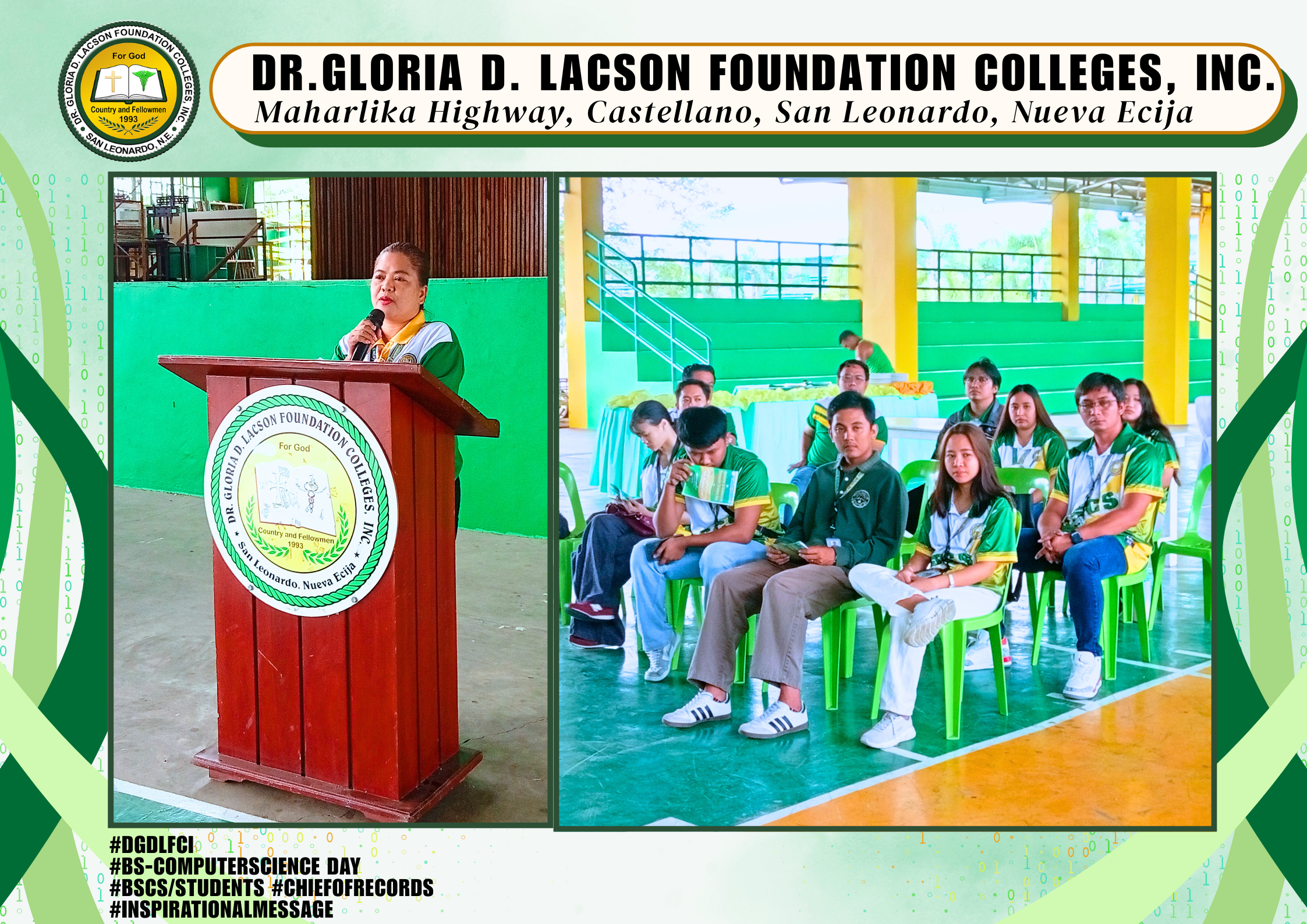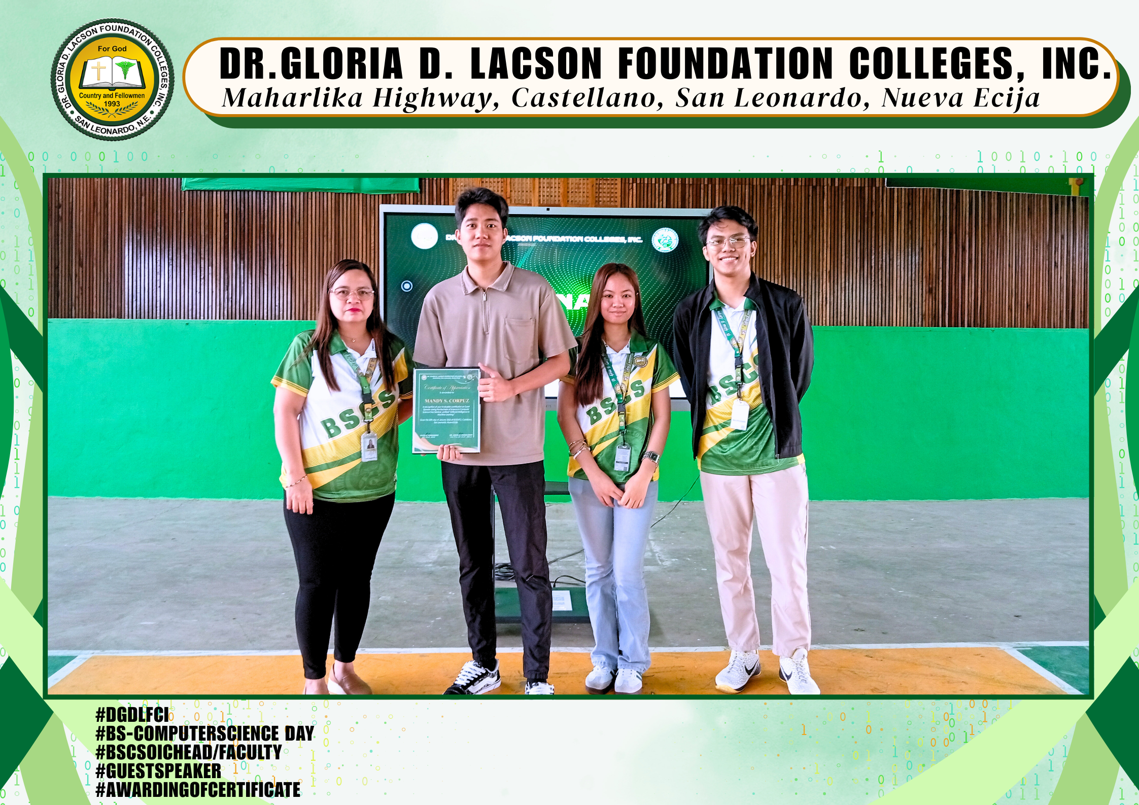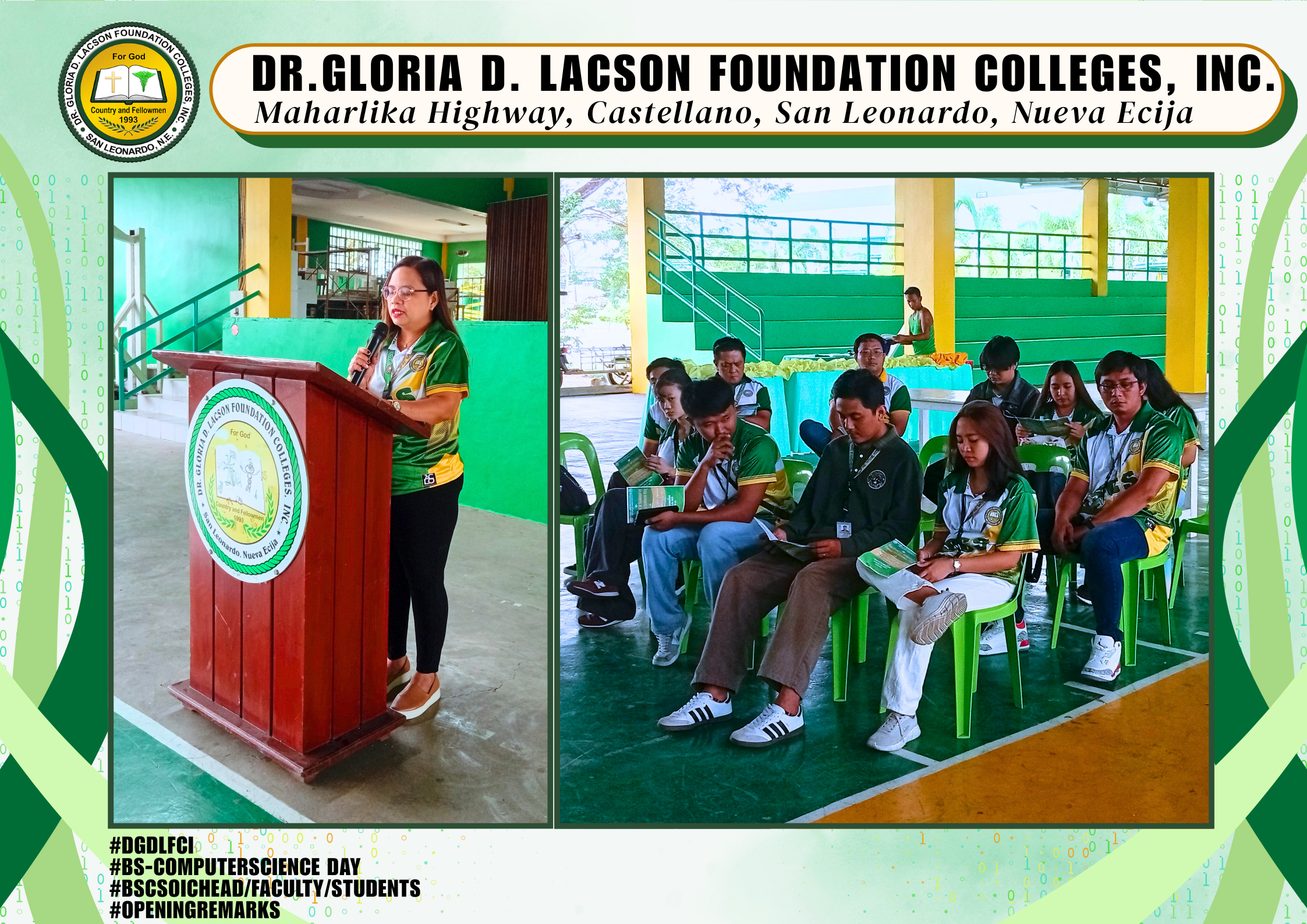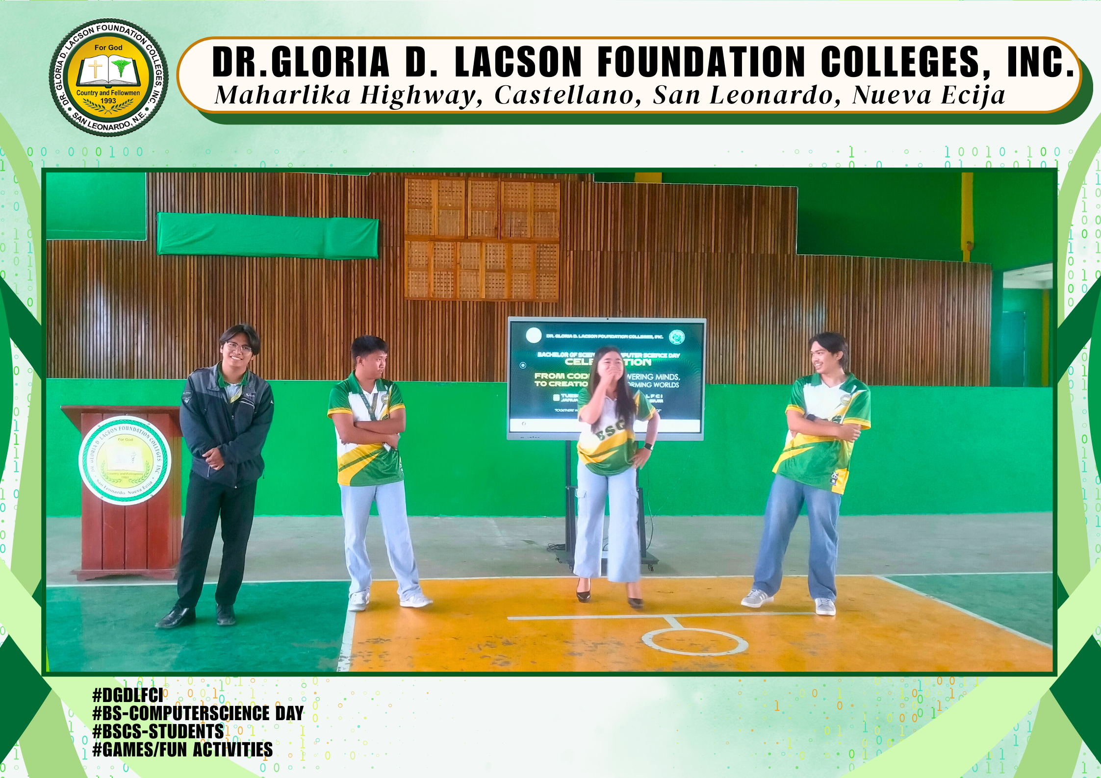 The Bachelor of Computer Science Day Celebration held last January 20, 2026, at the DGDLFCI Gymnasium of Dr. Gloria D. Lacson Foundation Colleges, Inc. was a dynamic expression of innovation and creativity. Guided by the theme “From Code to Creation: Empowering Minds, Transforming Worlds,” the event showcased how future tech leaders are prepared to shape tomorrow through knowledge and innovation.