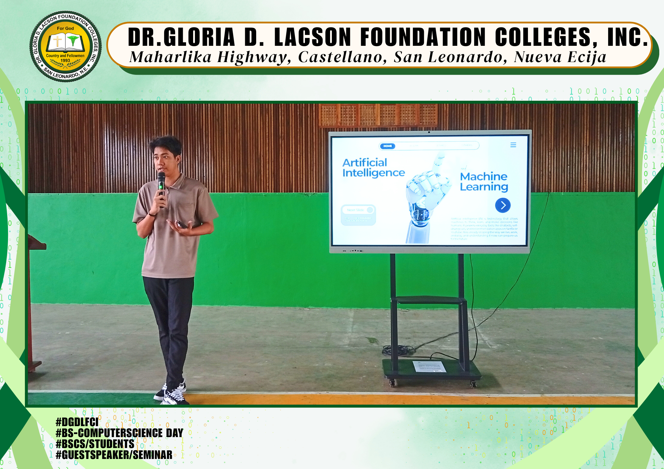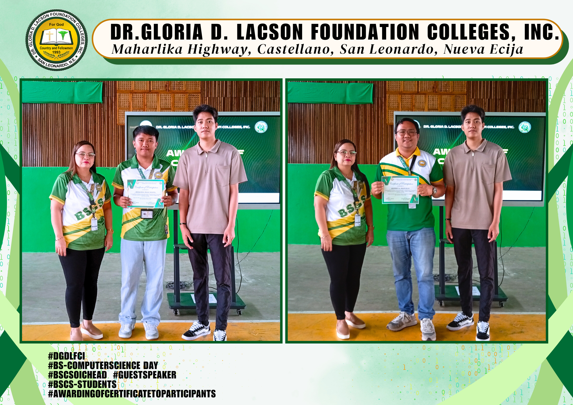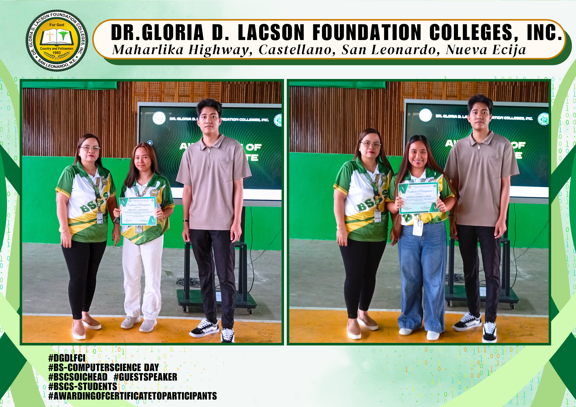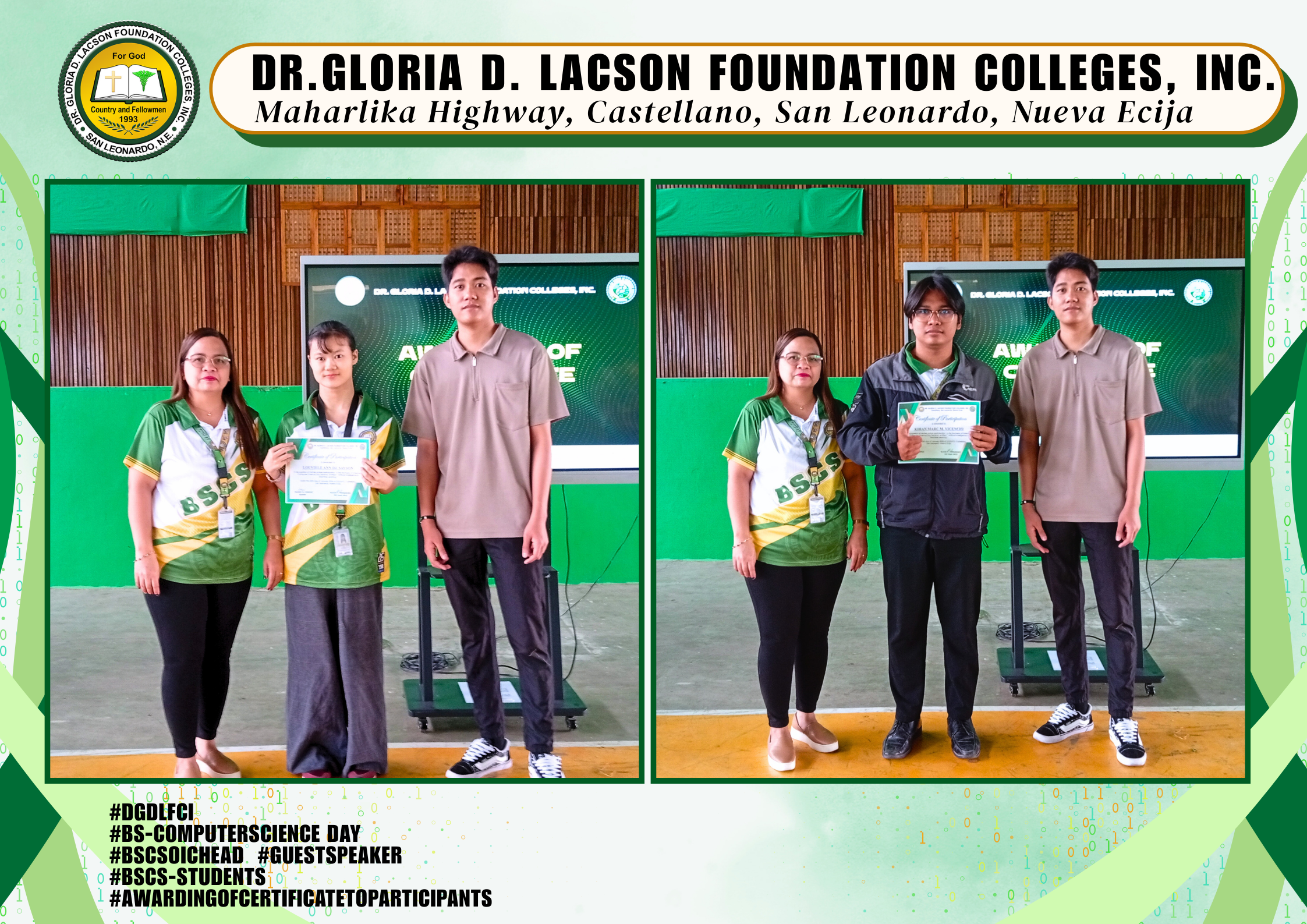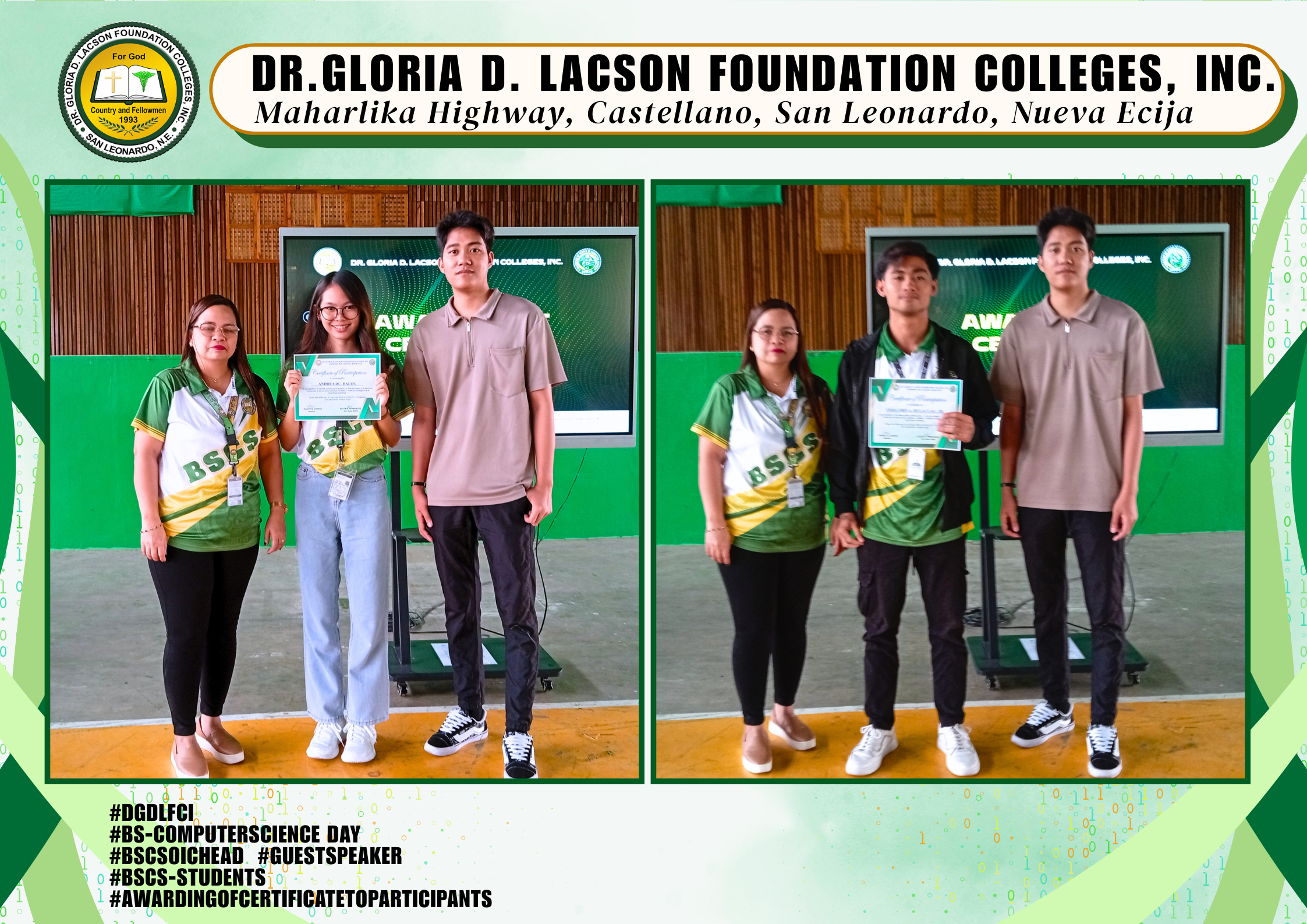 The Bachelor of Computer Science Day Celebration held last January 20, 2026, at the DGDLFCI Gymnasium of Dr. Gloria D. Lacson Foundation Colleges, Inc. was a dynamic expression of innovation and creativity. Guided by the theme “From Code to Creation: Empowering Minds, Transforming Worlds,” the event showcased how future tech leaders are prepared to shape tomorrow through knowledge and innovation.