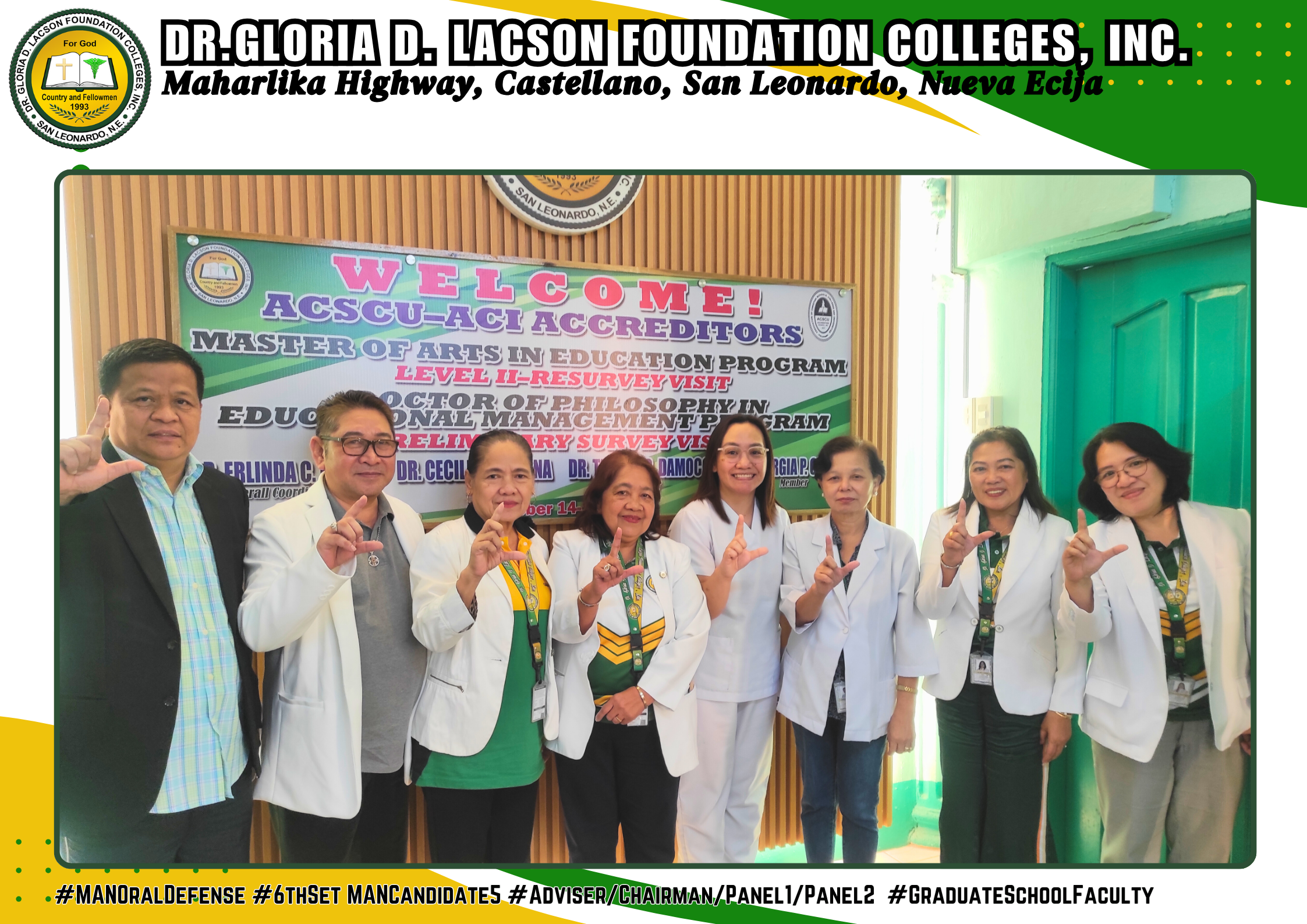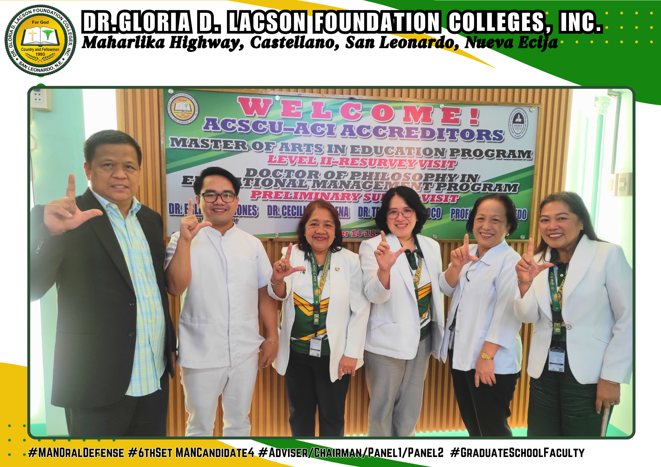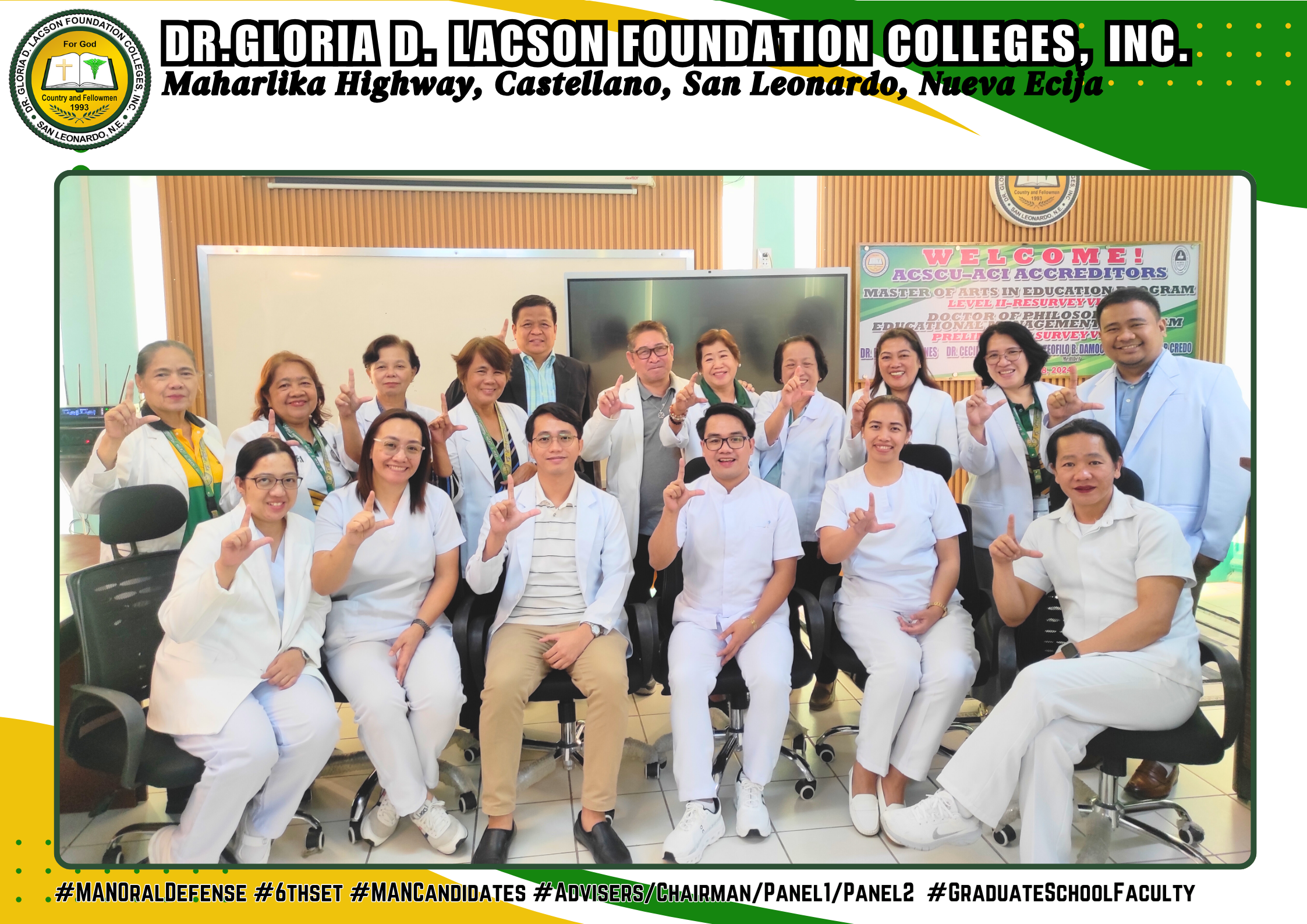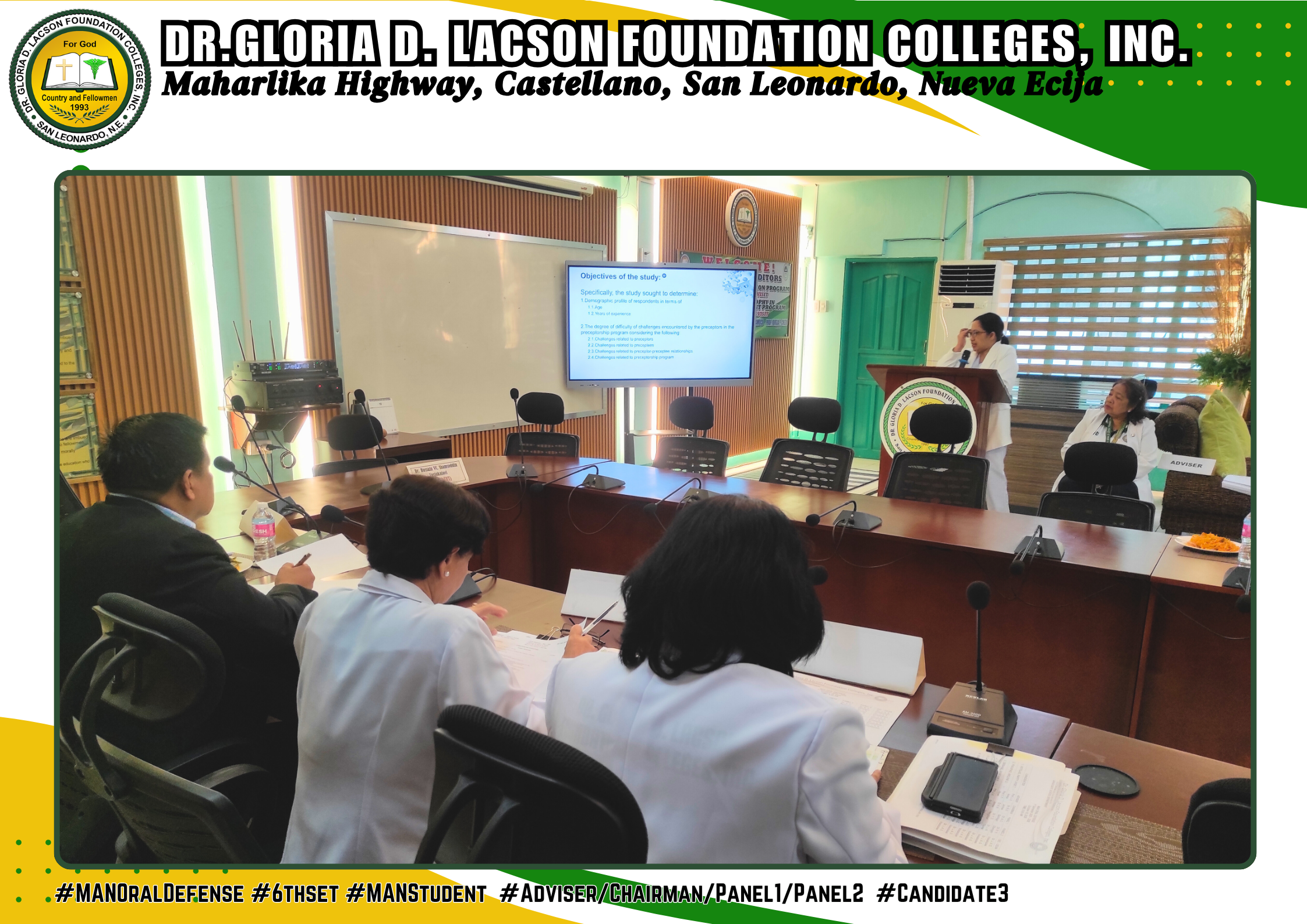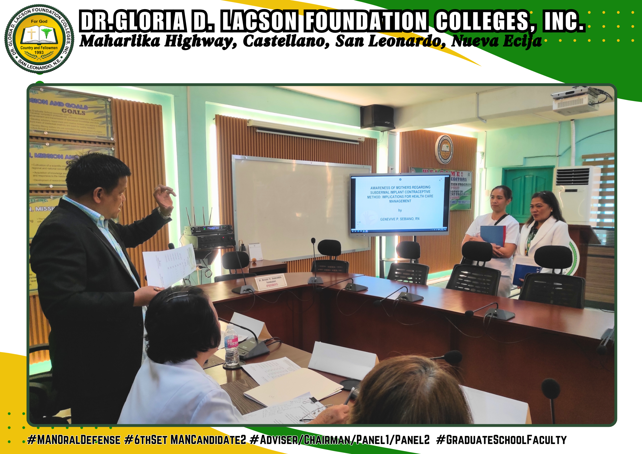 The Graduate School Department of Dr. Gloria D. Lacson Foundation Colleges, Inc. proudly conducted the 6th Set of the Master of Arts in Nursing Oral Defense last October 18, 2025, at the DGDLFCI Accreditation Room.