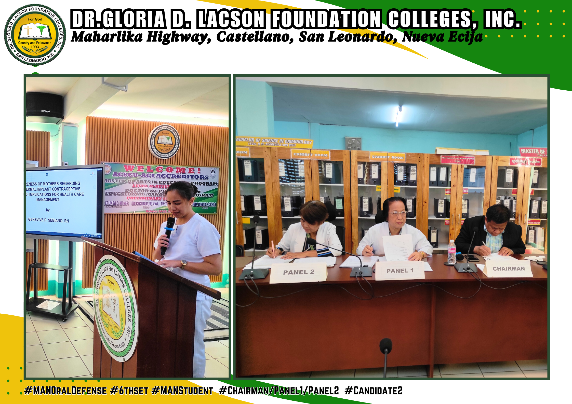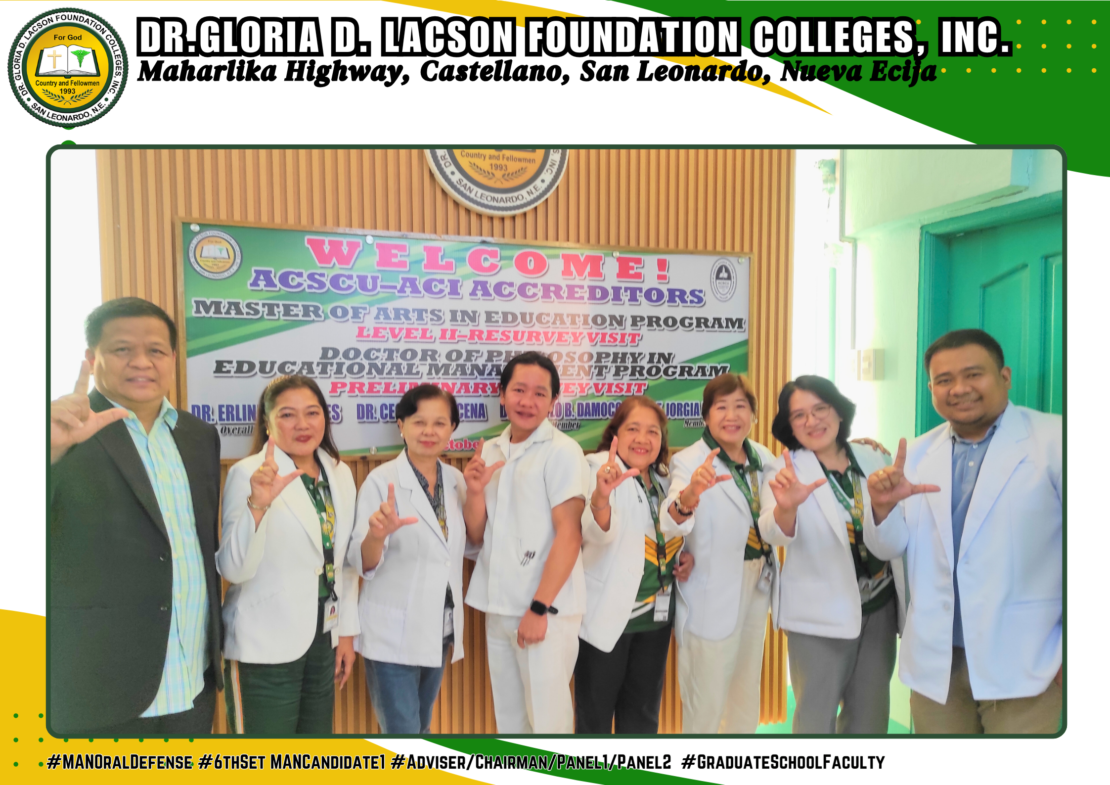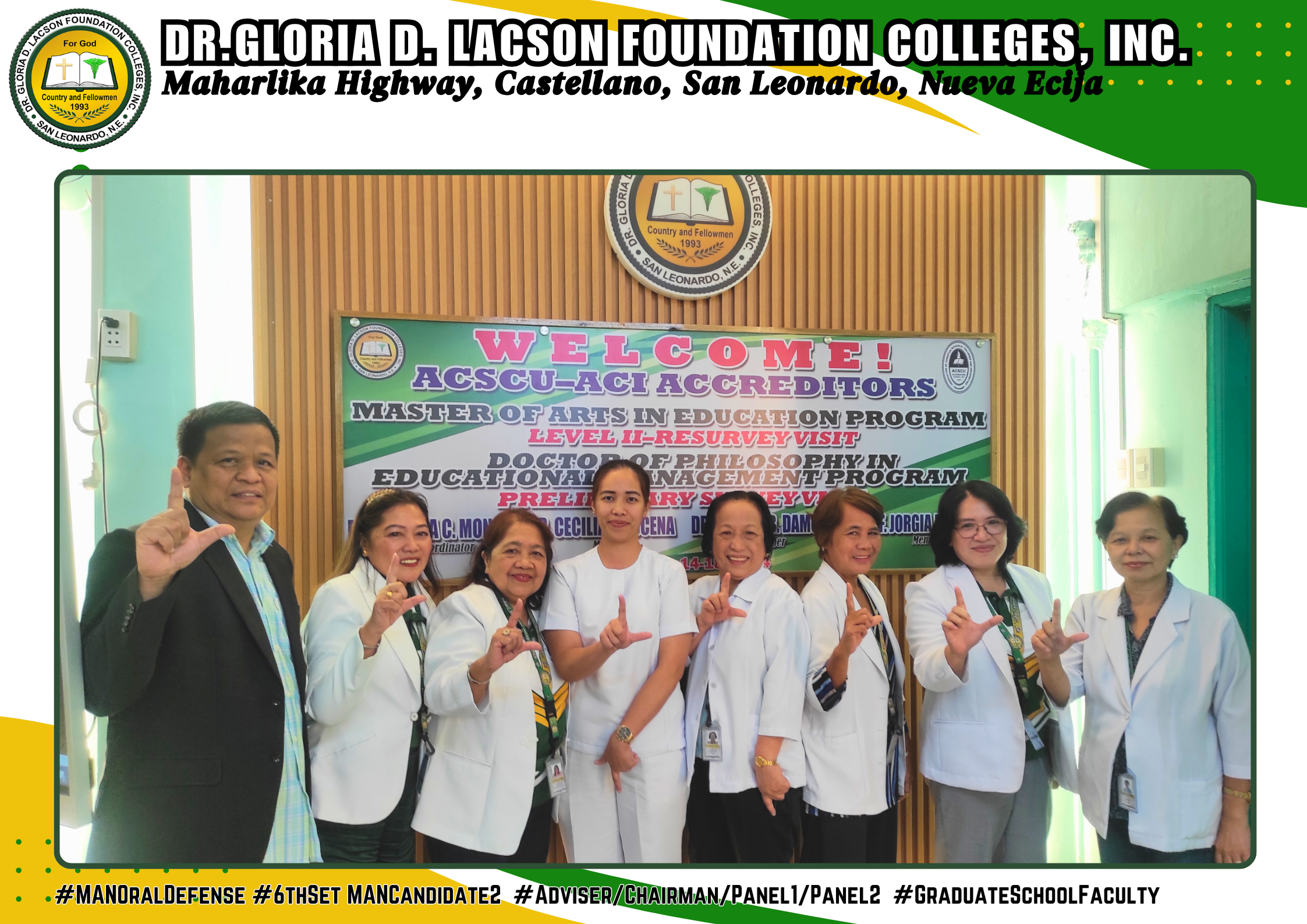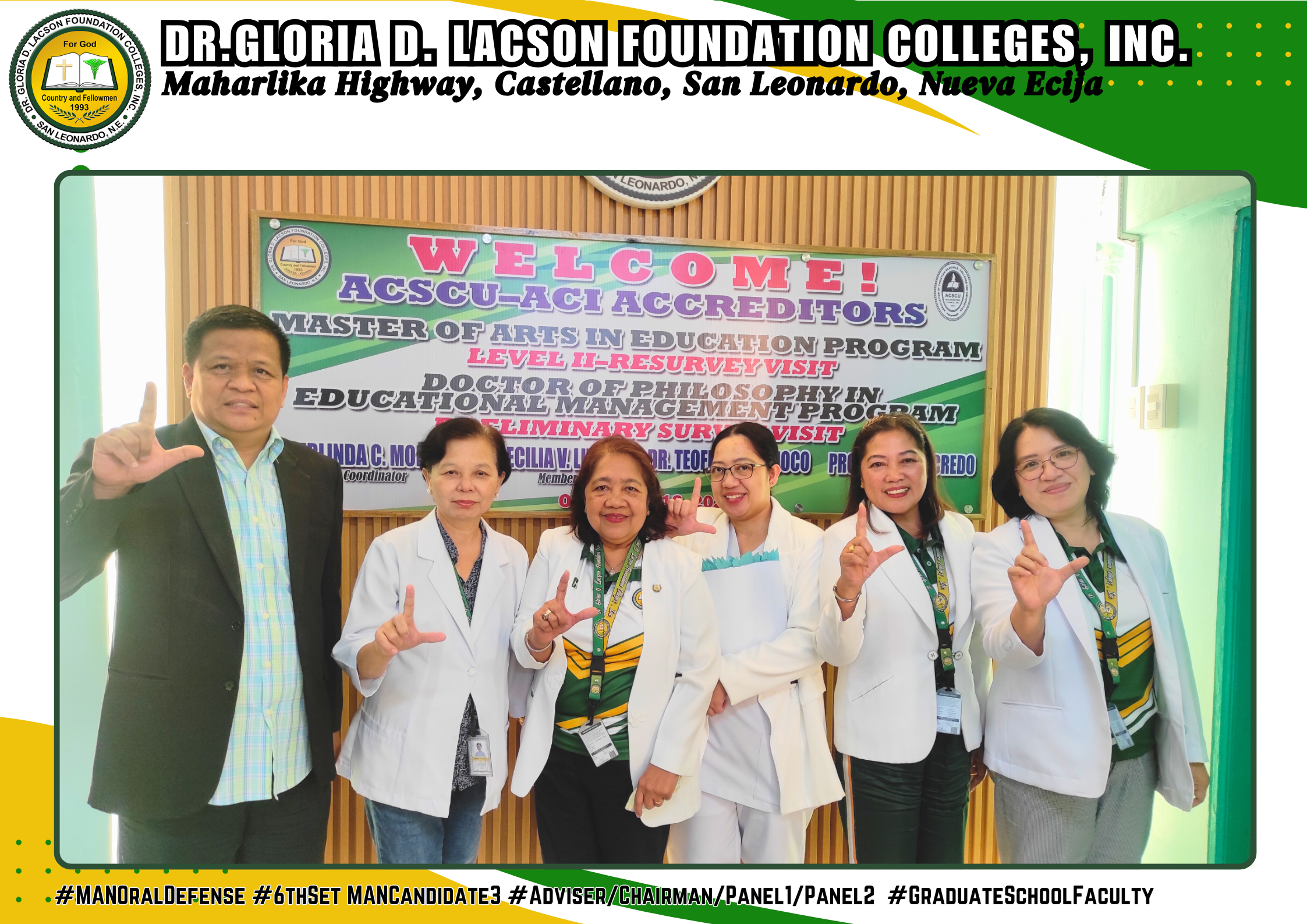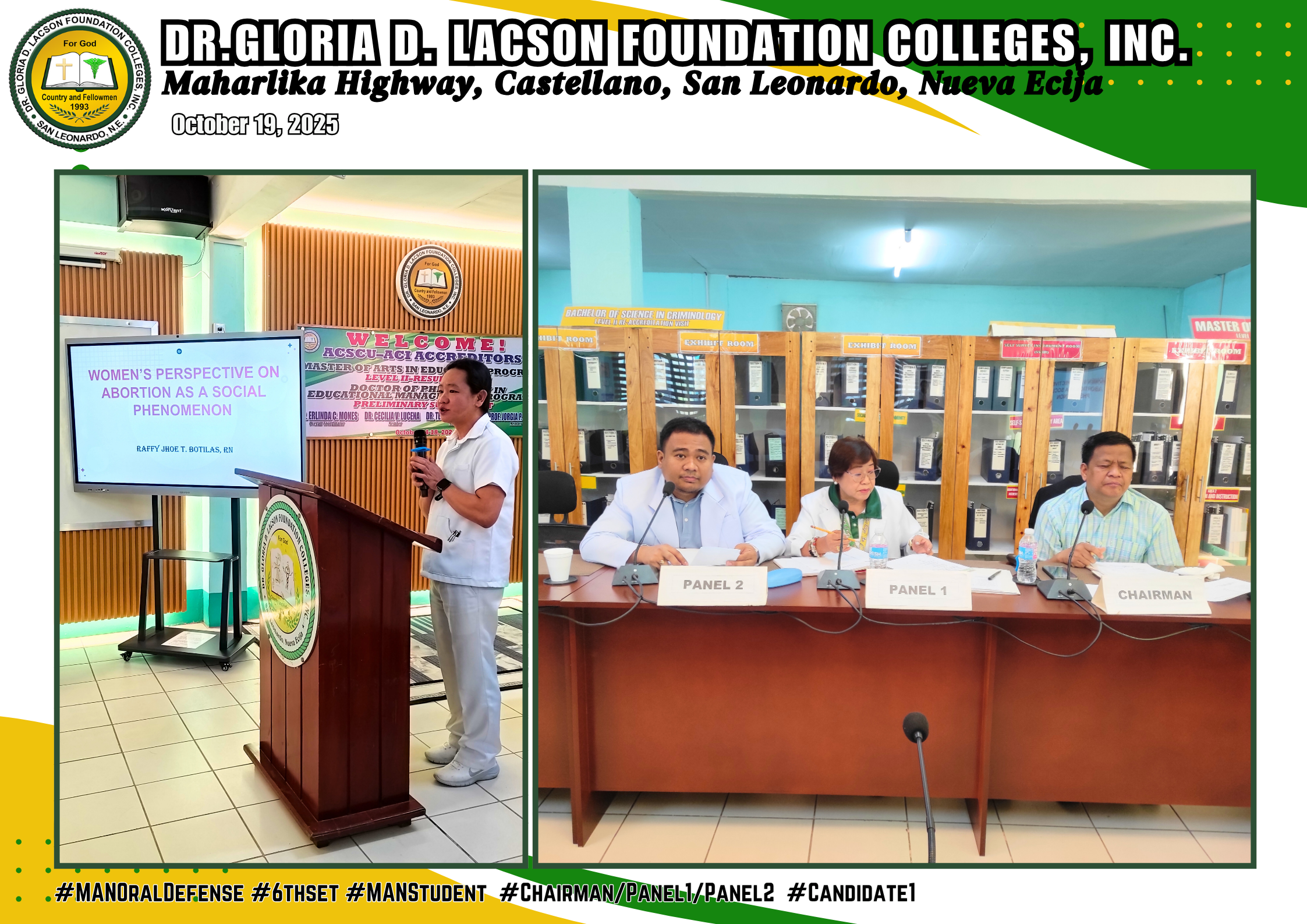 The Graduate School Department of Dr. Gloria D. Lacson Foundation Colleges, Inc. proudly conducted the 6th Set of the Master of Arts in Nursing Oral Defense last October 18, 2025, at the DGDLFCI Accreditation Room.