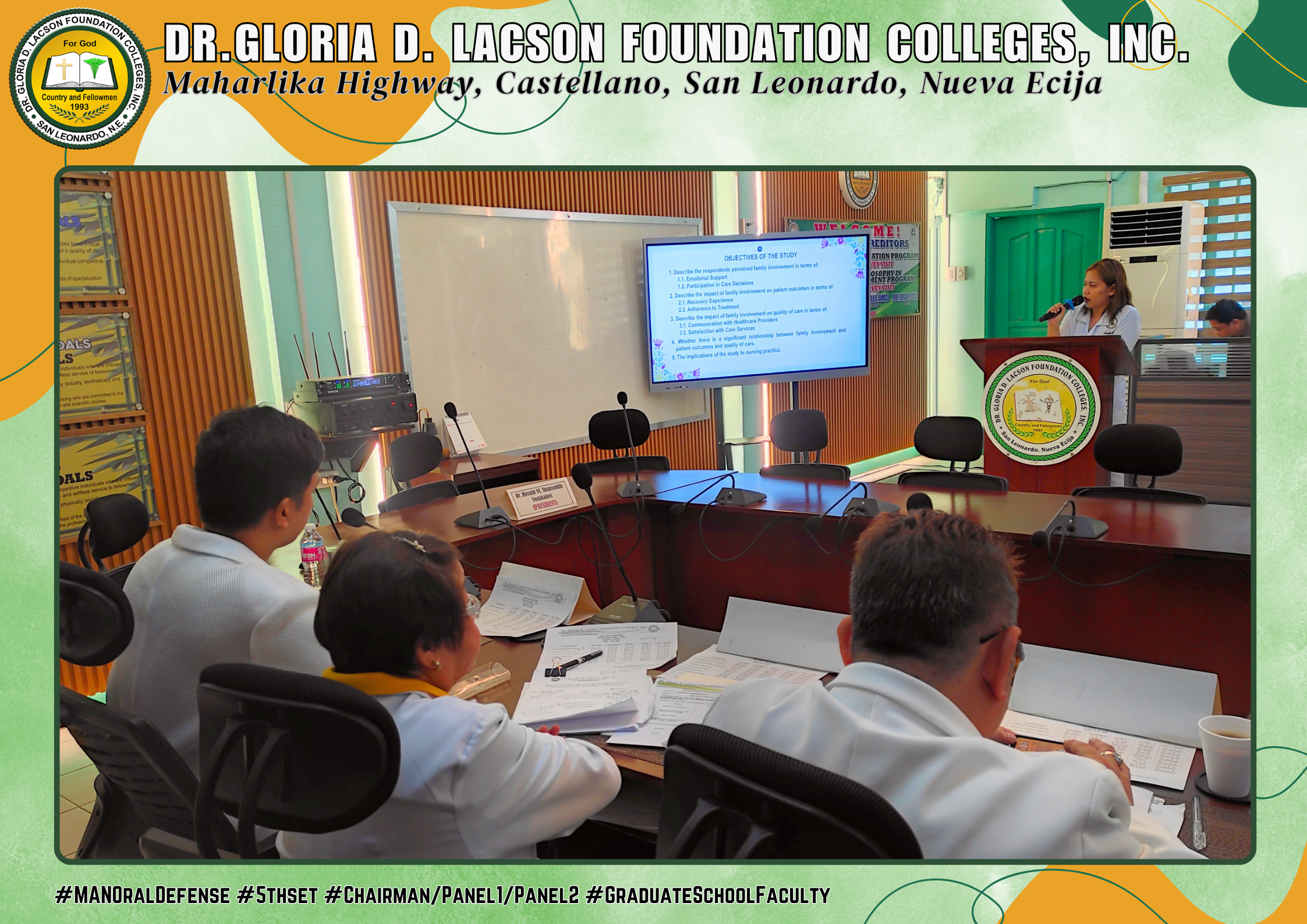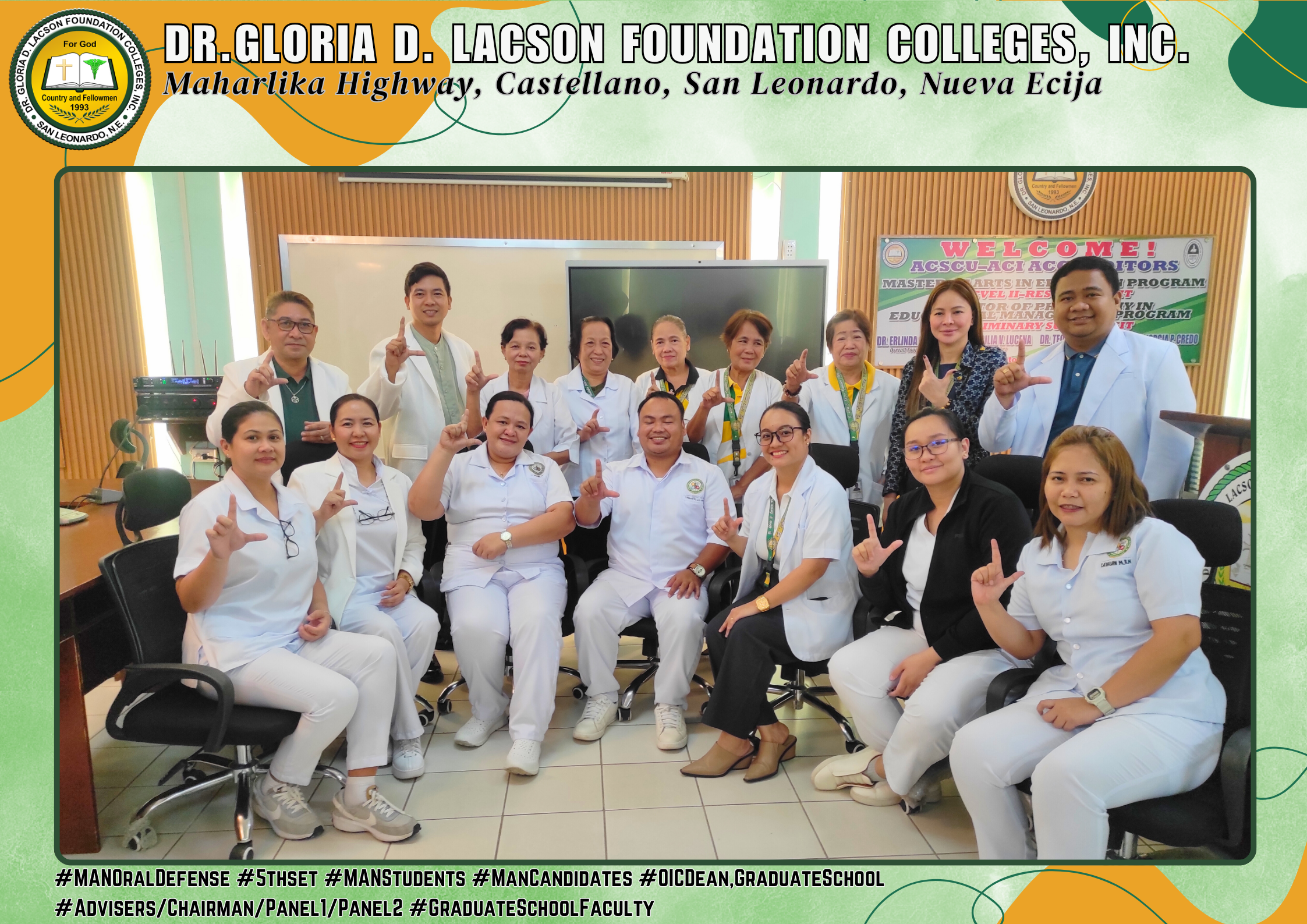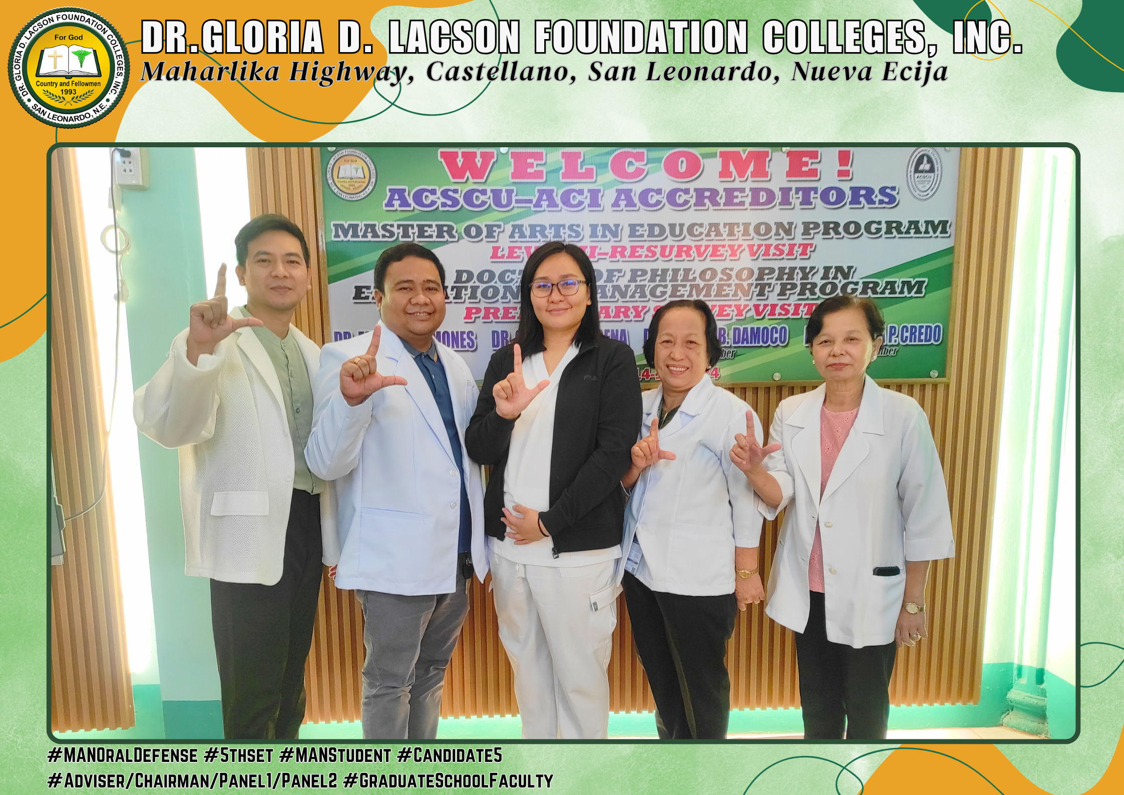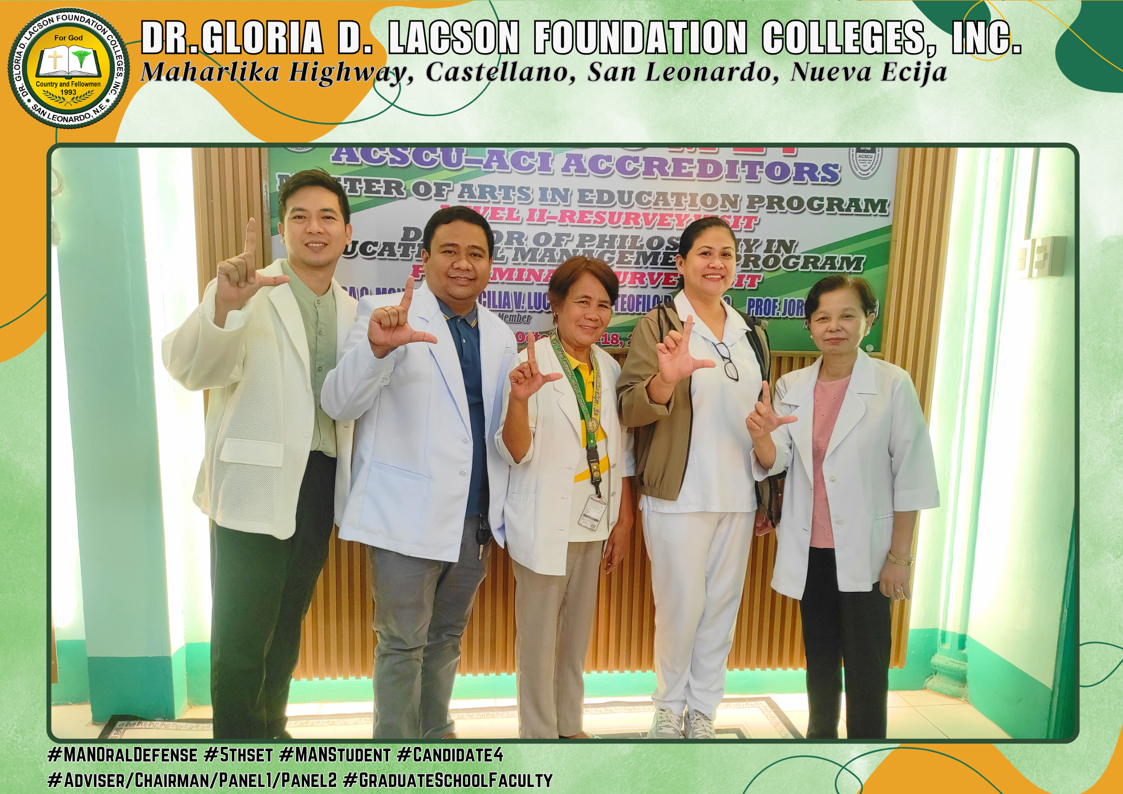 The Graduate School Department of Dr. Gloria D. Lacson Foundation Colleges, Inc. proudly presented the 5th Set of Master of Arts in Nursing students as they successfully conducted their oral defense at the DGDLFCI Accreditation Room. This scholarly endeavor highlighted the students’ dedication, academic excellence, and unwavering commitment to advancing their professional growth and research competence in the field of nursing.