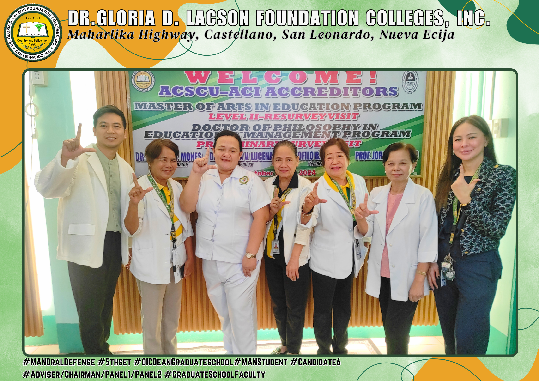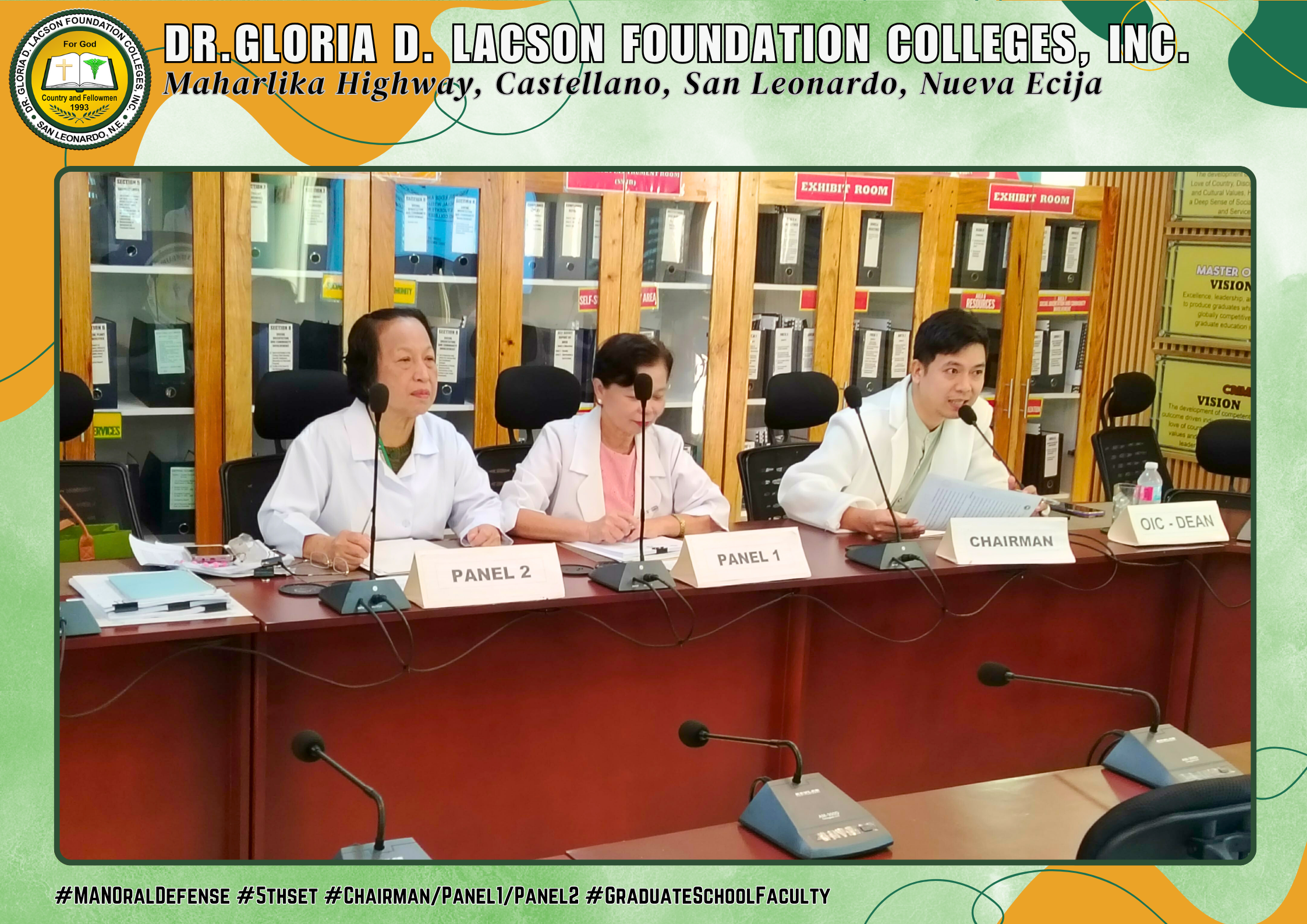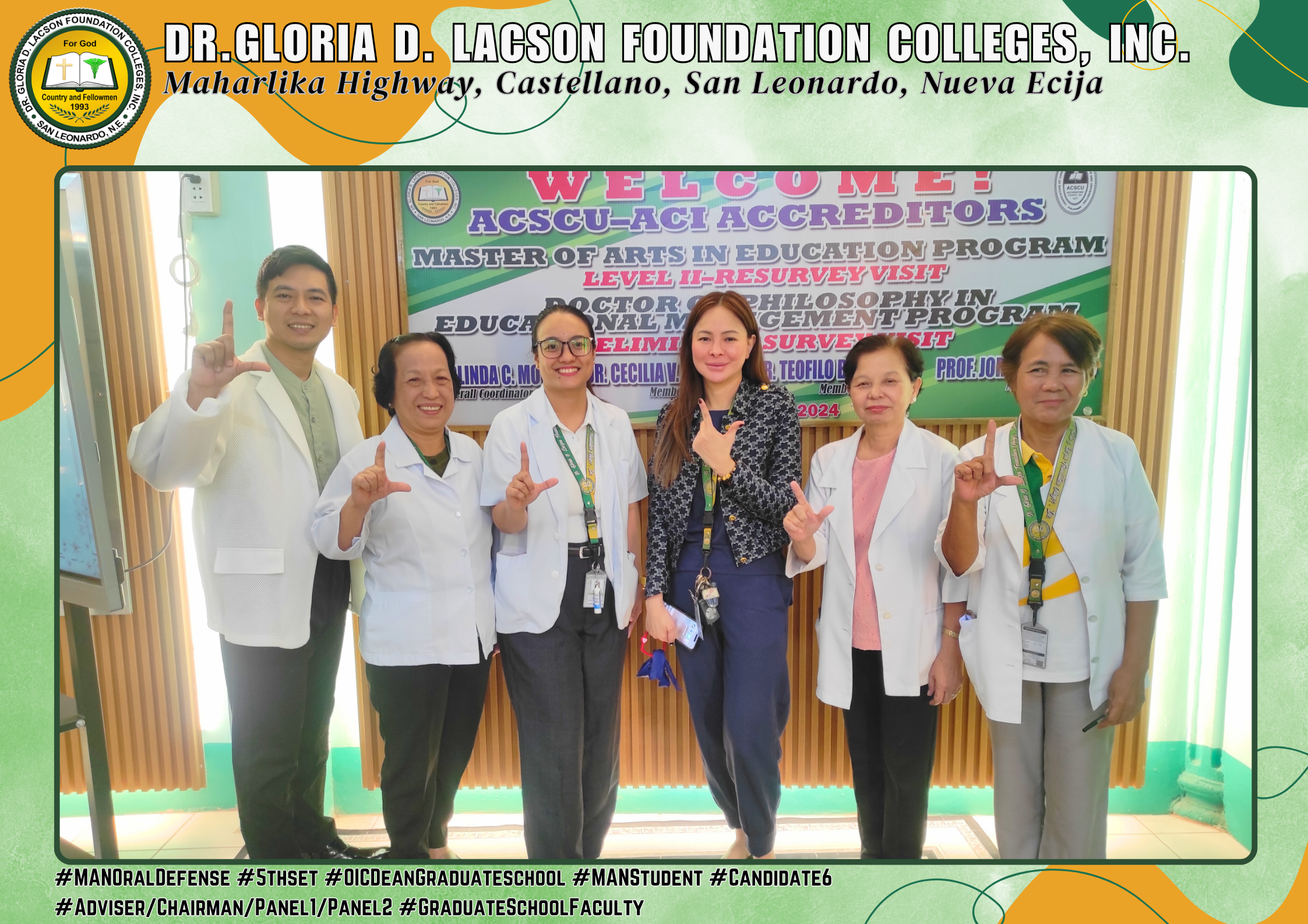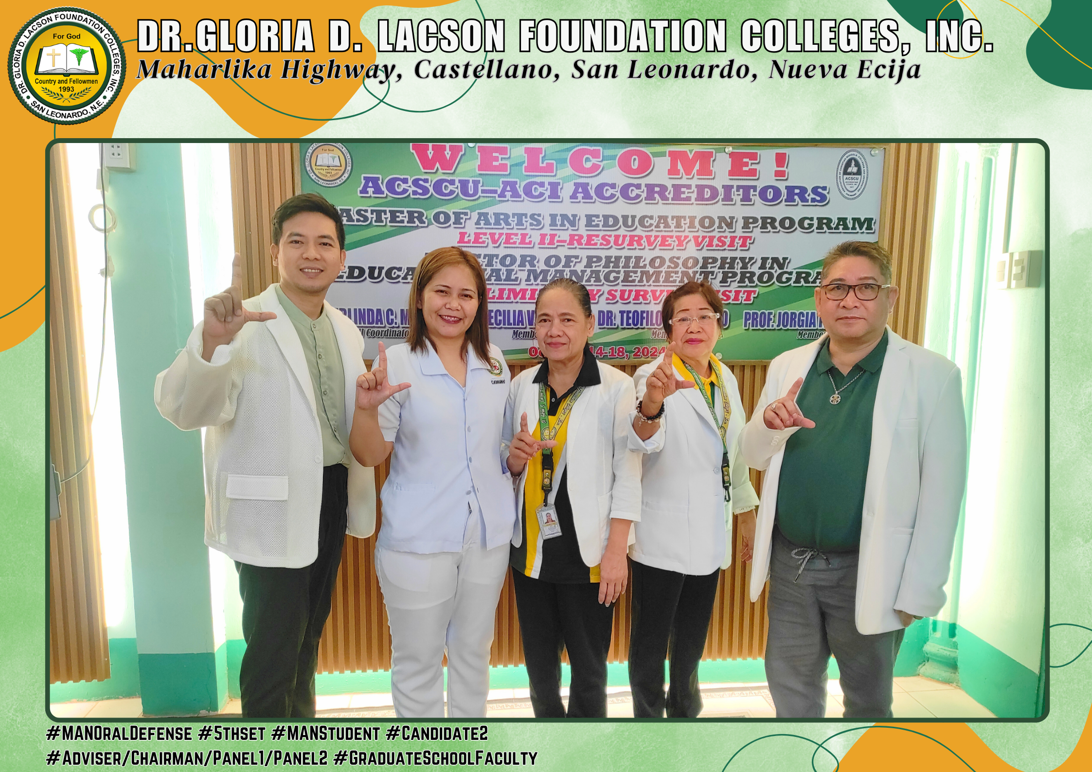 The Graduate School Department of Dr. Gloria D. Lacson Foundation Colleges, Inc. proudly presented the 5th Set of Master of Arts in Nursing students as they successfully conducted their oral defense at the DGDLFCI Accreditation Room. This scholarly endeavor highlighted the students’ dedication, academic excellence, and unwavering commitment to advancing their professional growth and research competence in the field of nursing.