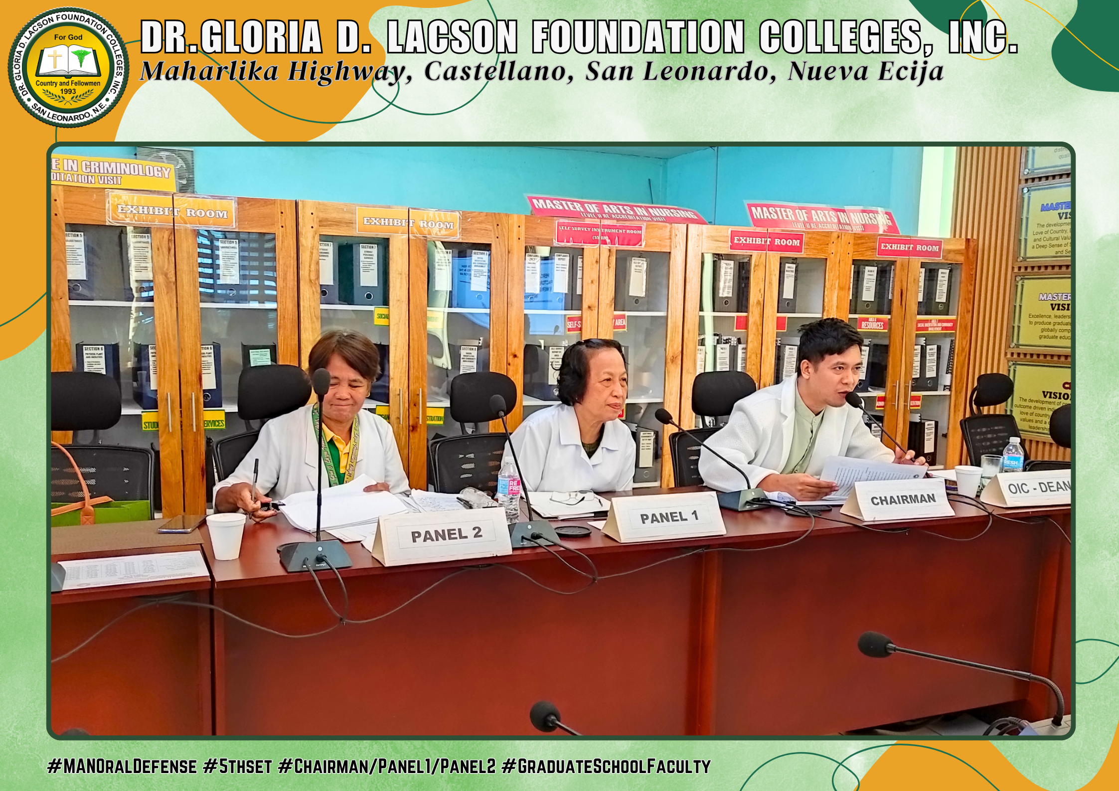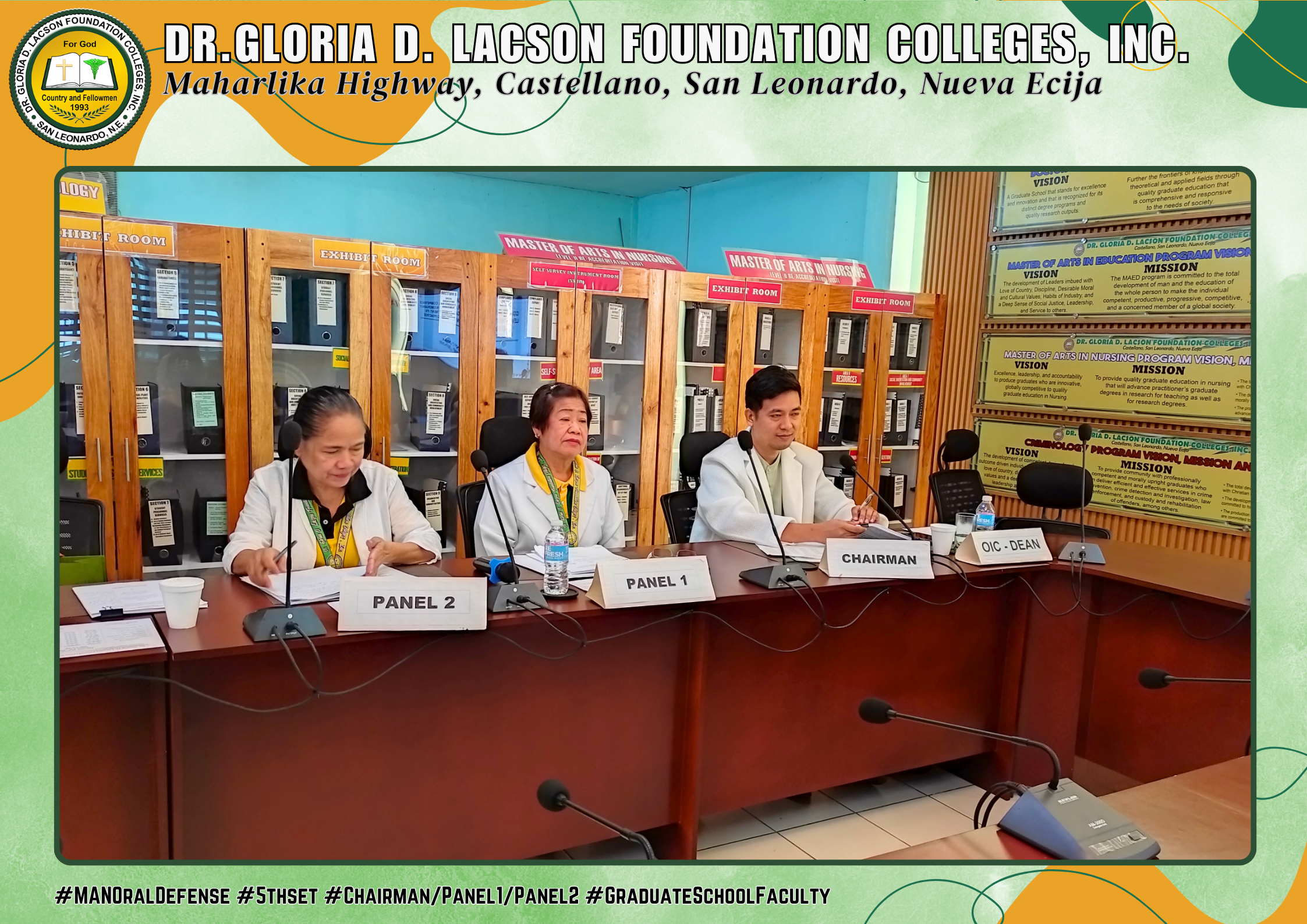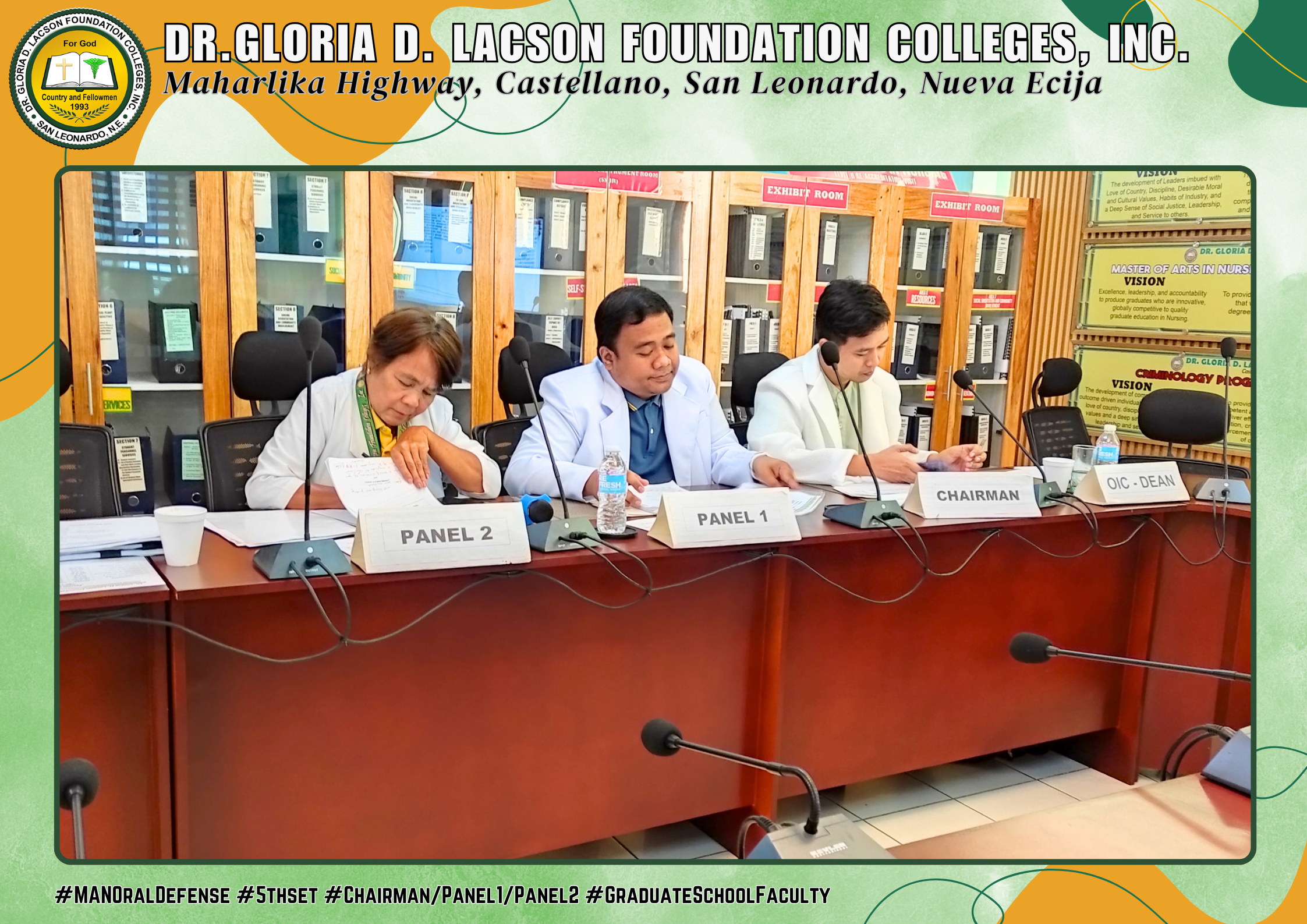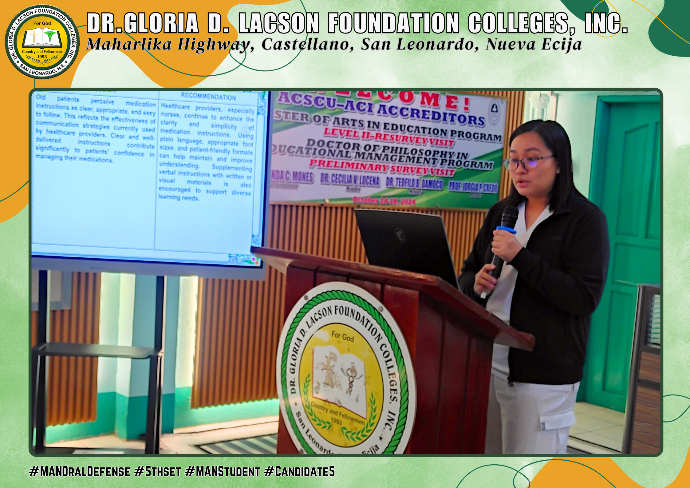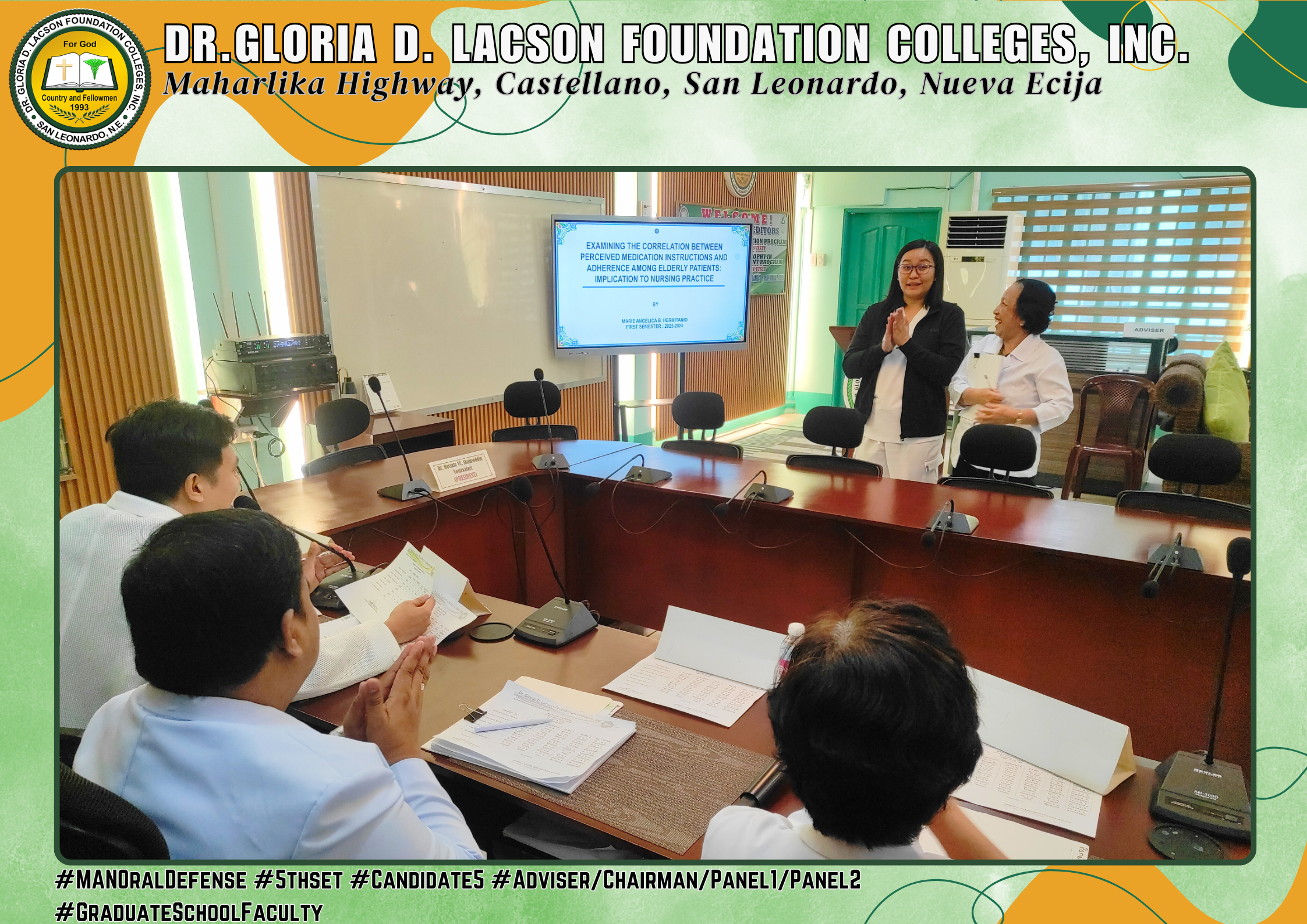 The Graduate School Department of Dr. Gloria D. Lacson Foundation Colleges, Inc. proudly presented the 5th Set of Master of Arts in Nursing students as they successfully conducted their oral defense at the DGDLFCI Accreditation Room. This scholarly endeavor highlighted the students’ dedication, academic excellence, and unwavering commitment to advancing their professional growth and research competence in the field of nursing.