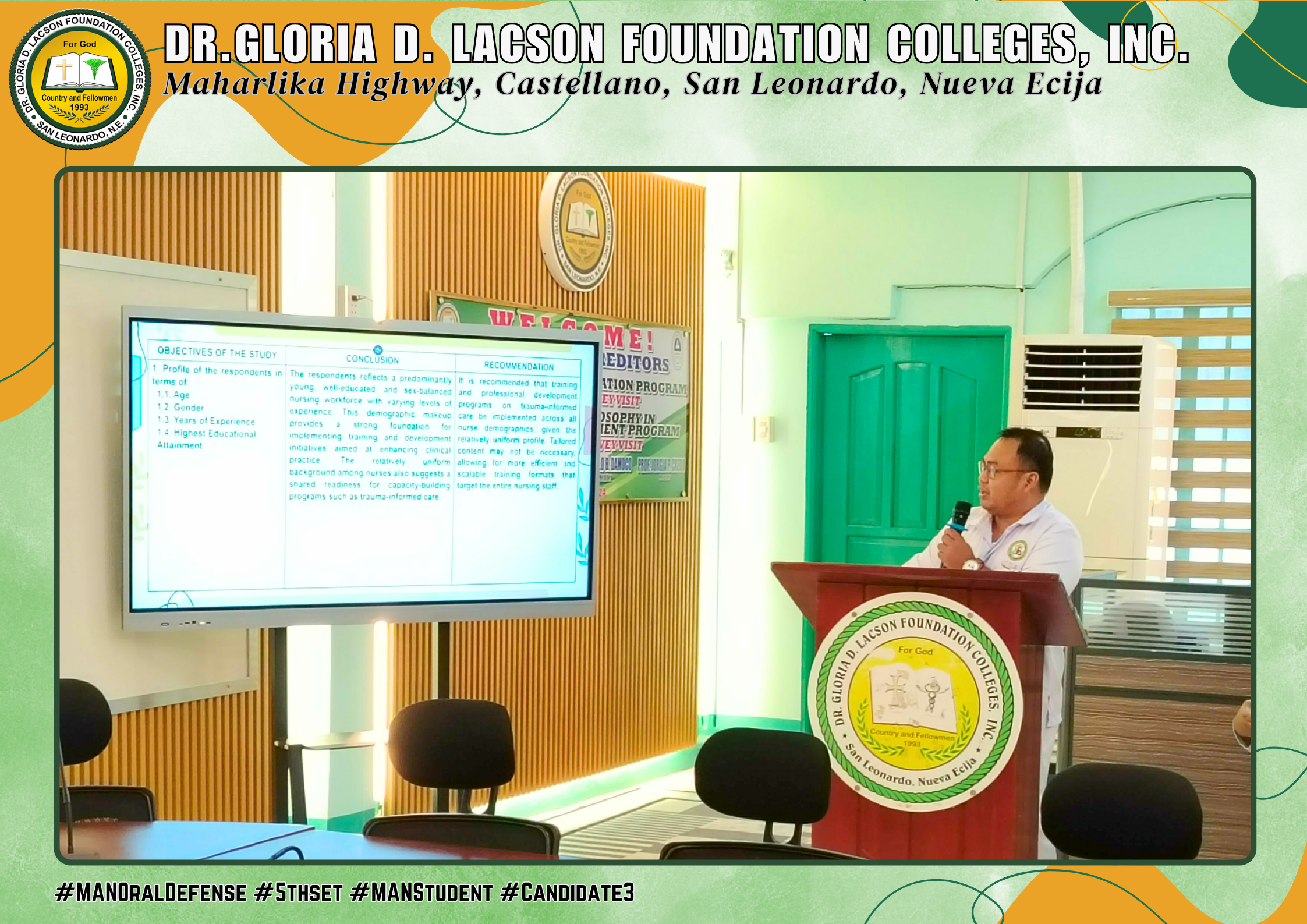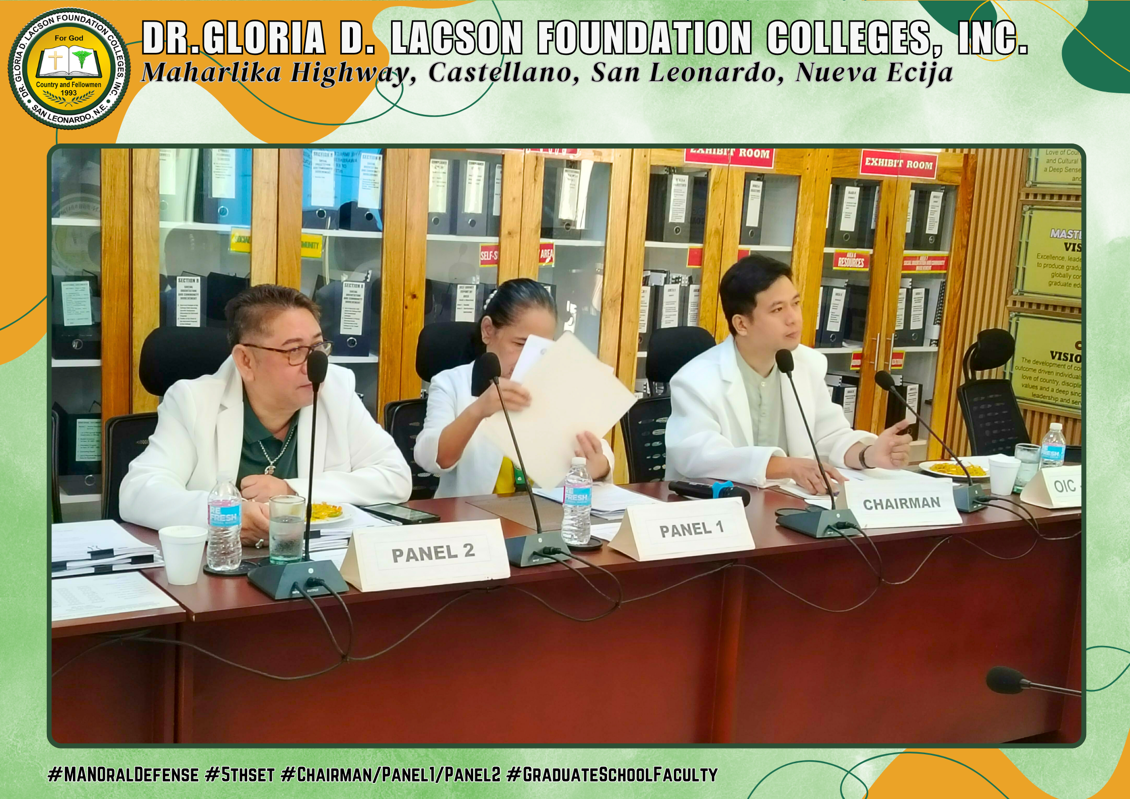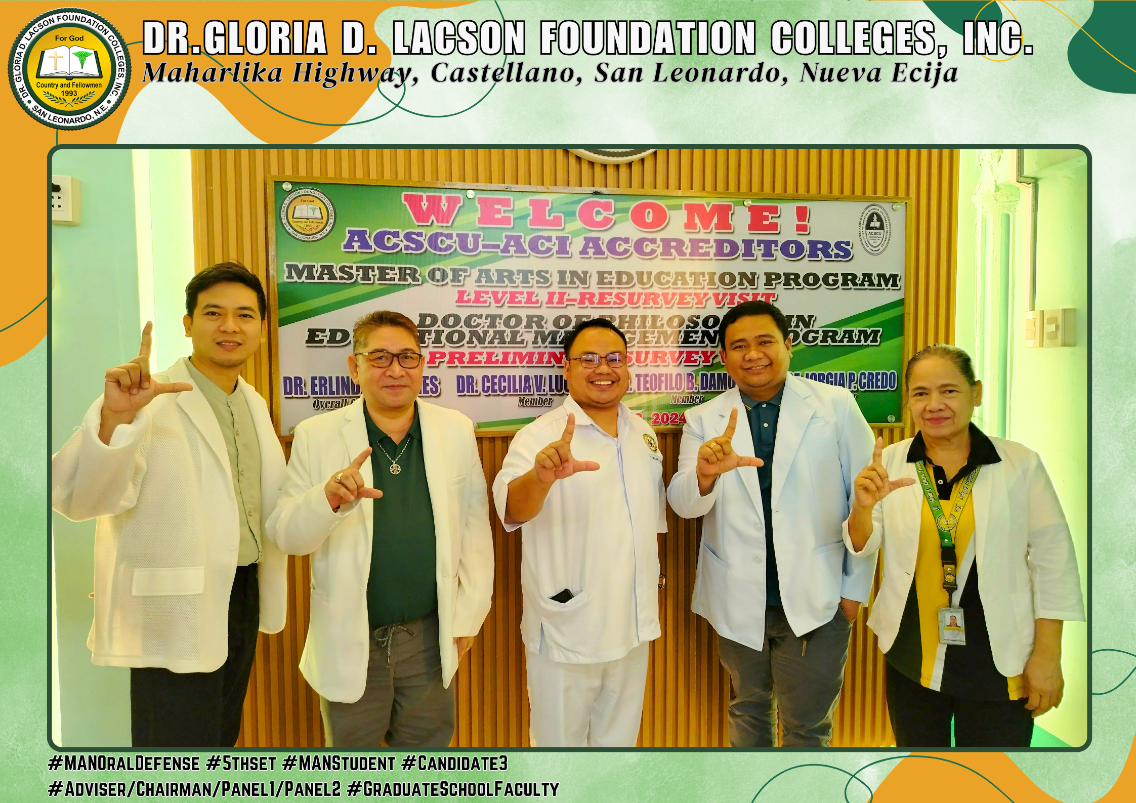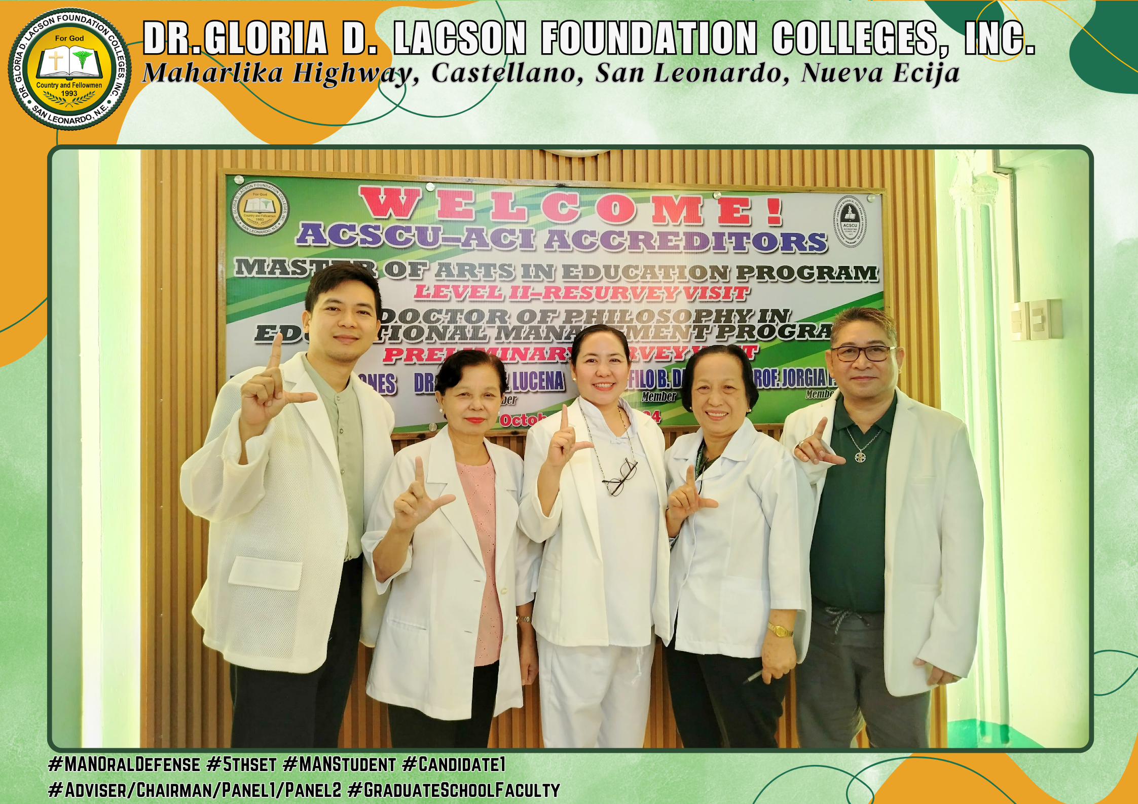 The Graduate School Department of Dr. Gloria D. Lacson Foundation Colleges, Inc. proudly presented the 5th Set of Master of Arts in Nursing students as they successfully conducted their oral defense at the DGDLFCI Accreditation Room. This scholarly endeavor highlighted the students’ dedication, academic excellence, and unwavering commitment to advancing their professional growth and research competence in the field of nursing.