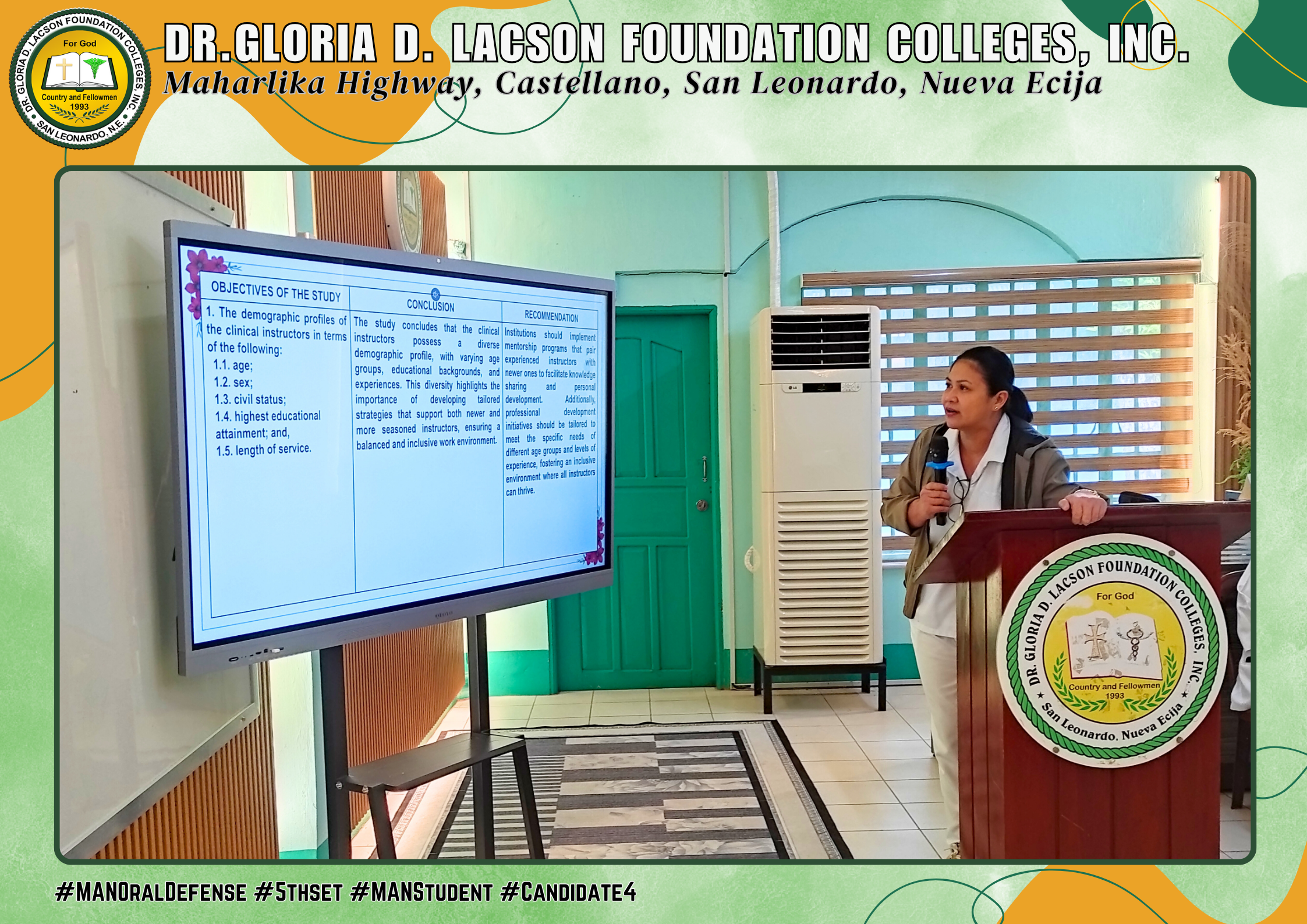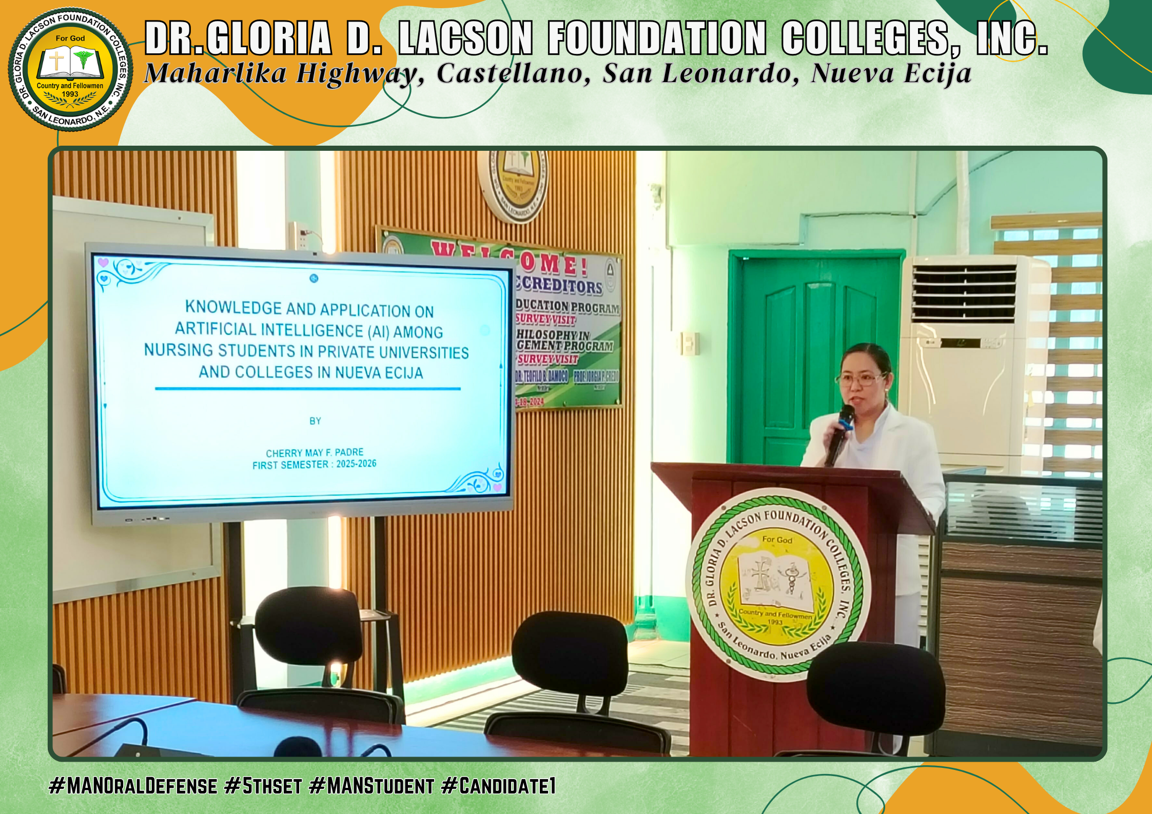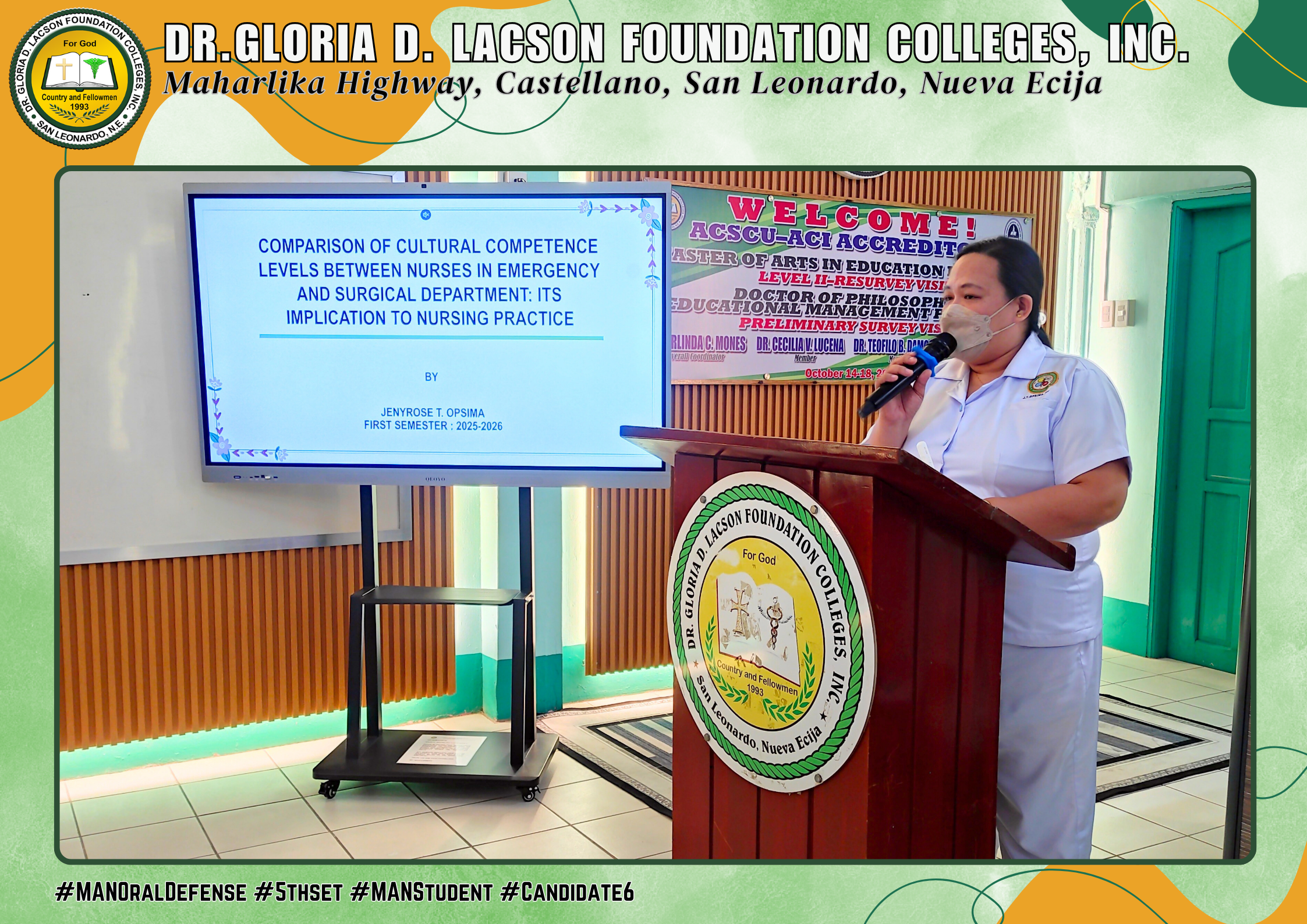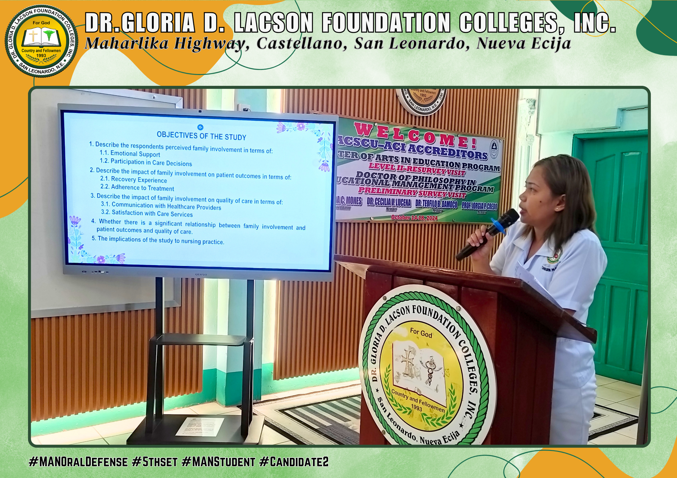 The Graduate School Department of Dr. Gloria D. Lacson Foundation Colleges, Inc. proudly presented the 5th Set of Master of Arts in Nursing students as they successfully conducted their oral defense at the DGDLFCI Accreditation Room. This scholarly endeavor highlighted the students’ dedication, academic excellence, and unwavering commitment to advancing their professional growth and research competence in the field of nursing.