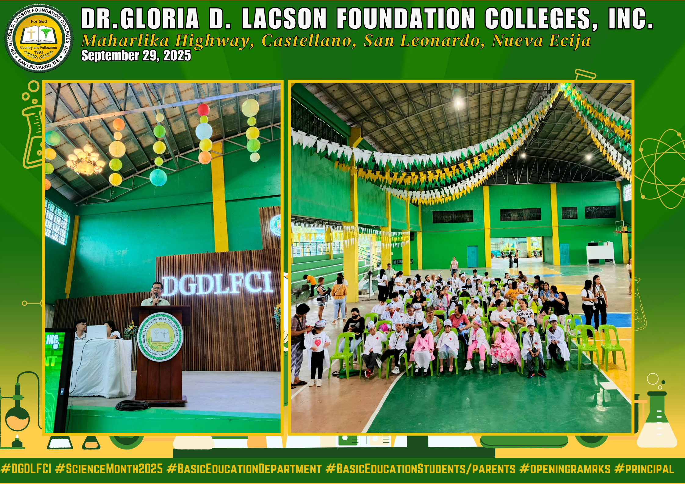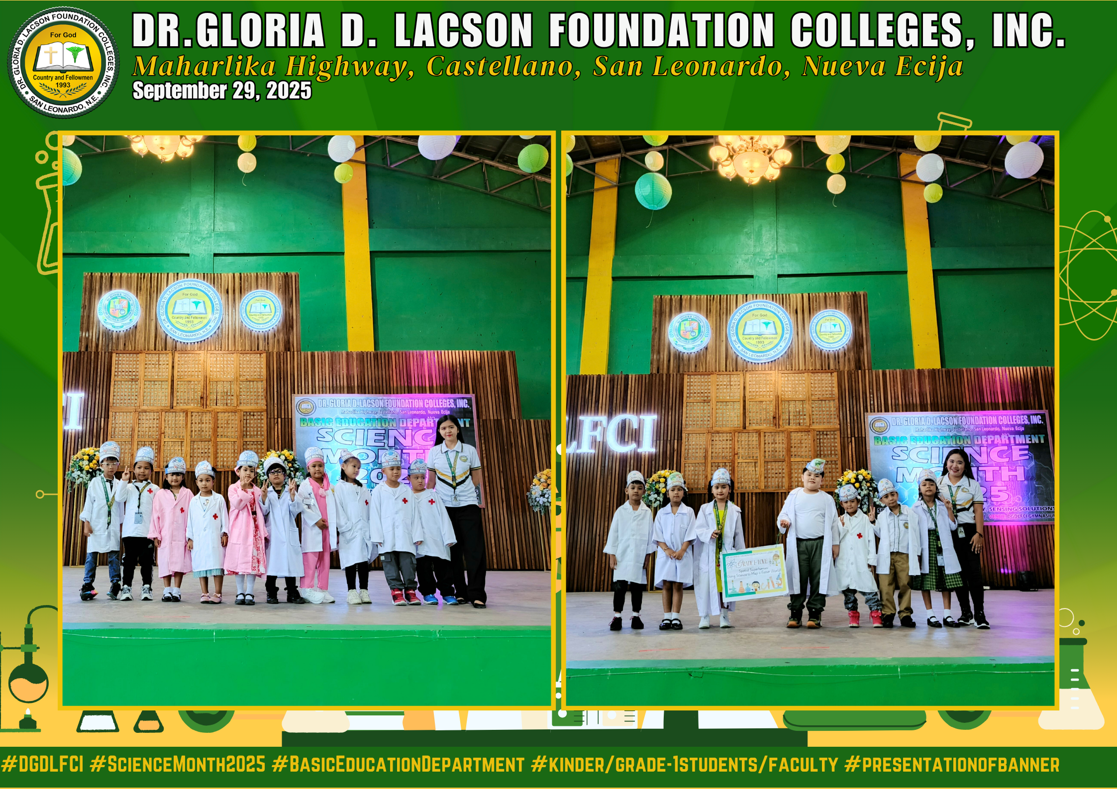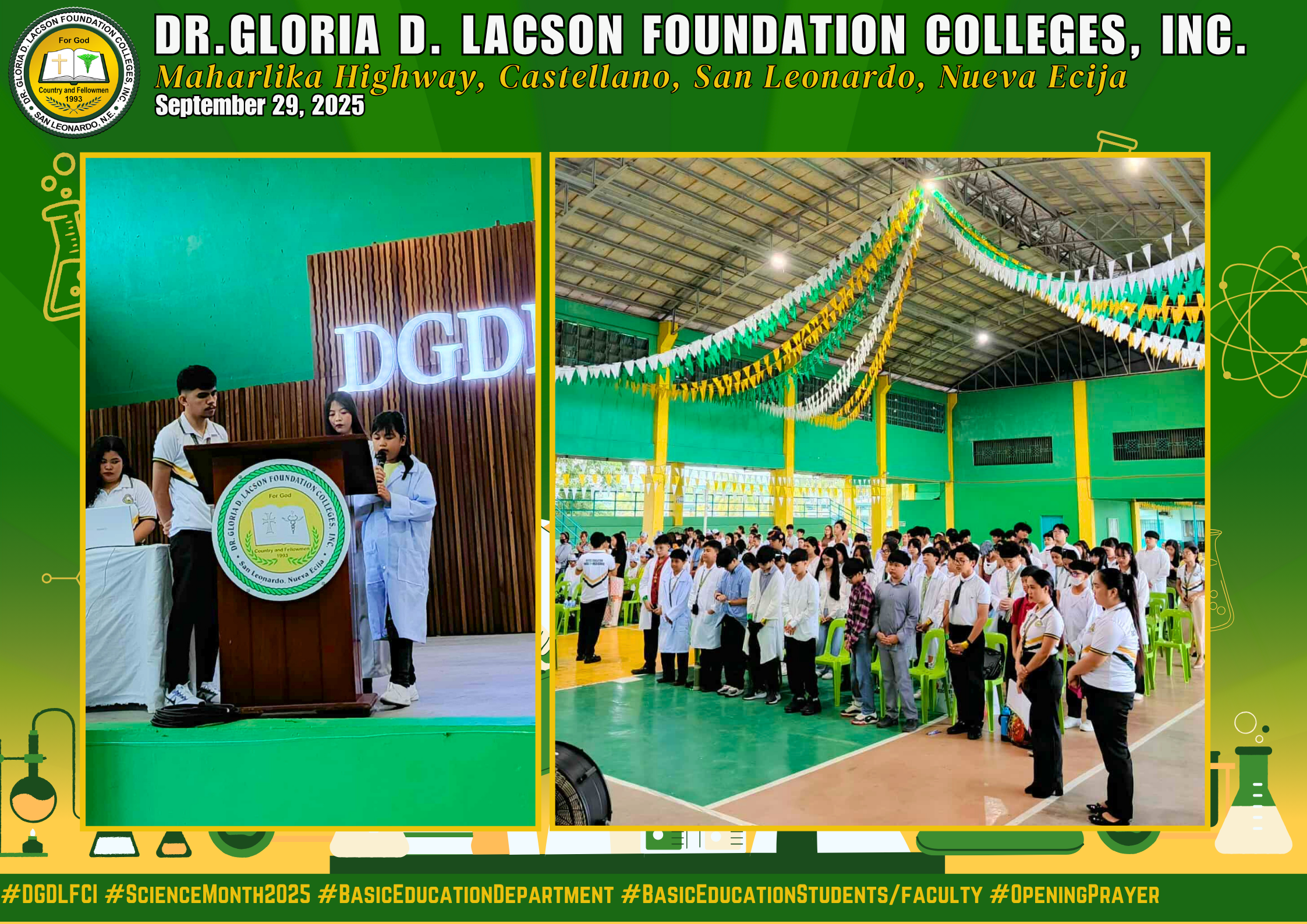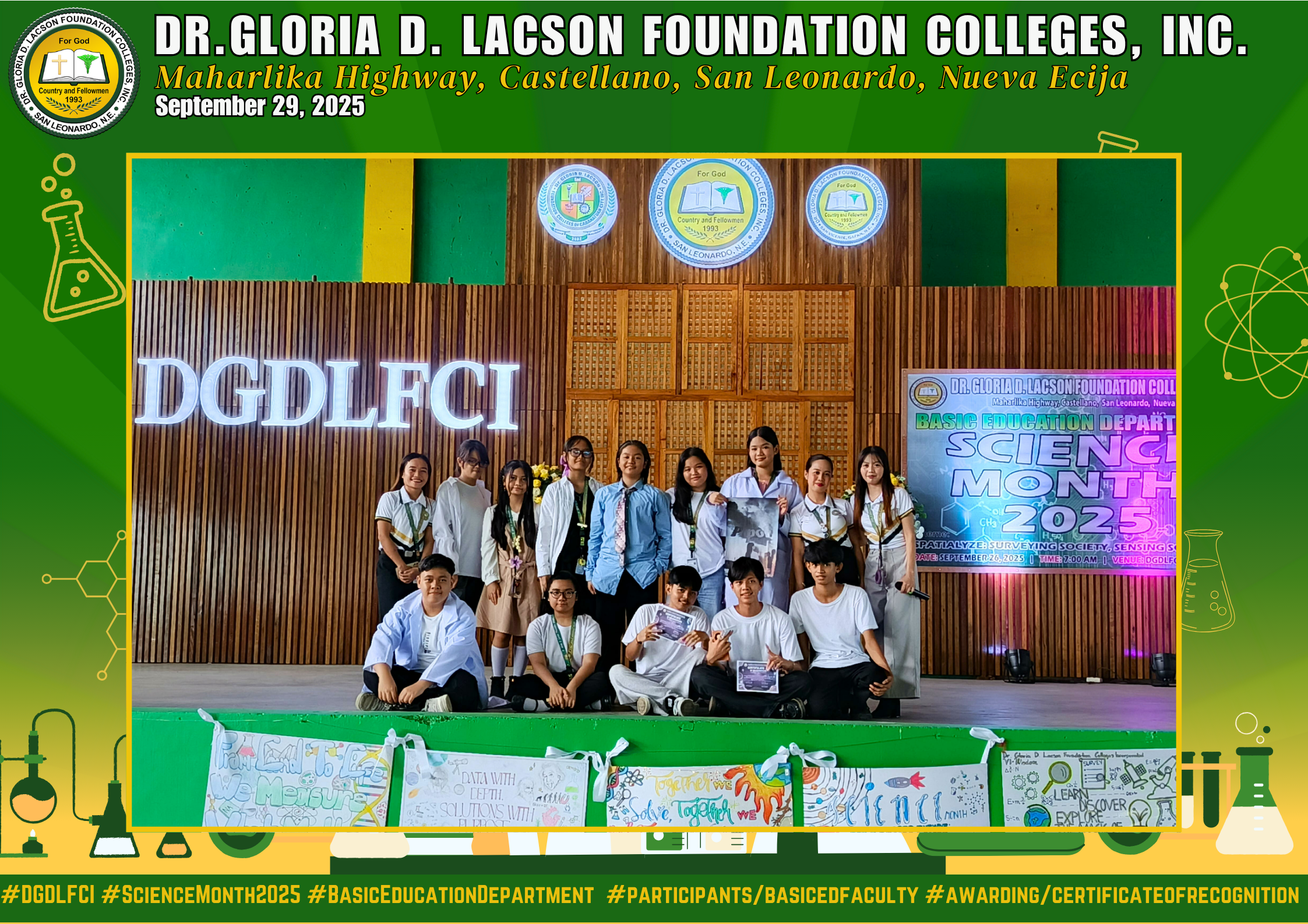 The Basic Education Department of Dr. Gloria D. Lacson Foundation Colleges, Inc. proudly celebrated Science Month 2025 last September 29, 2025, at the DGDLFCI Gymnasium with the theme “Spatialize: Surveying Society, Sensing Solutions.” The event highlighted the vital role of science and innovation in addressing societal challenges, fostering curiosity, and inspiring young Lacsonians to embrace knowledge, creativity, and discovery in shaping a better future.