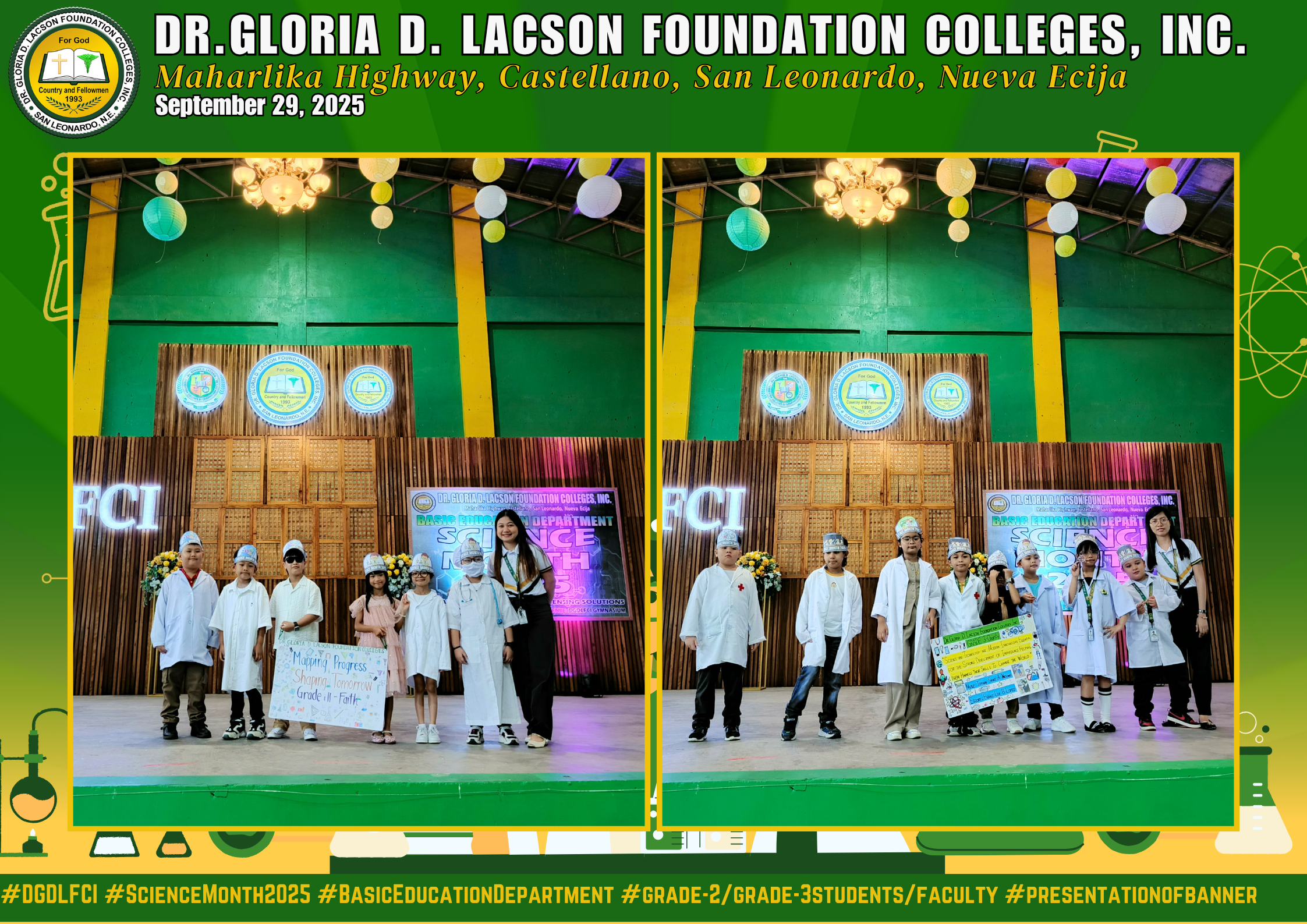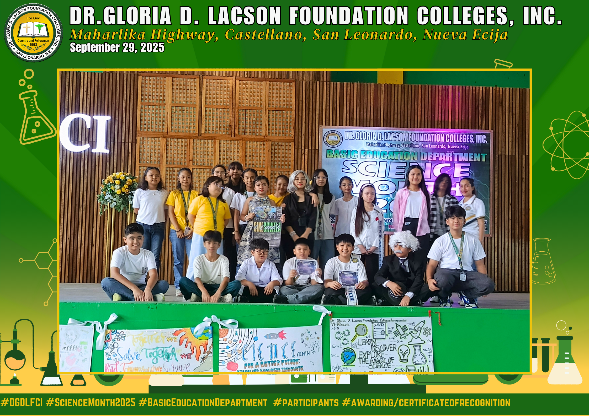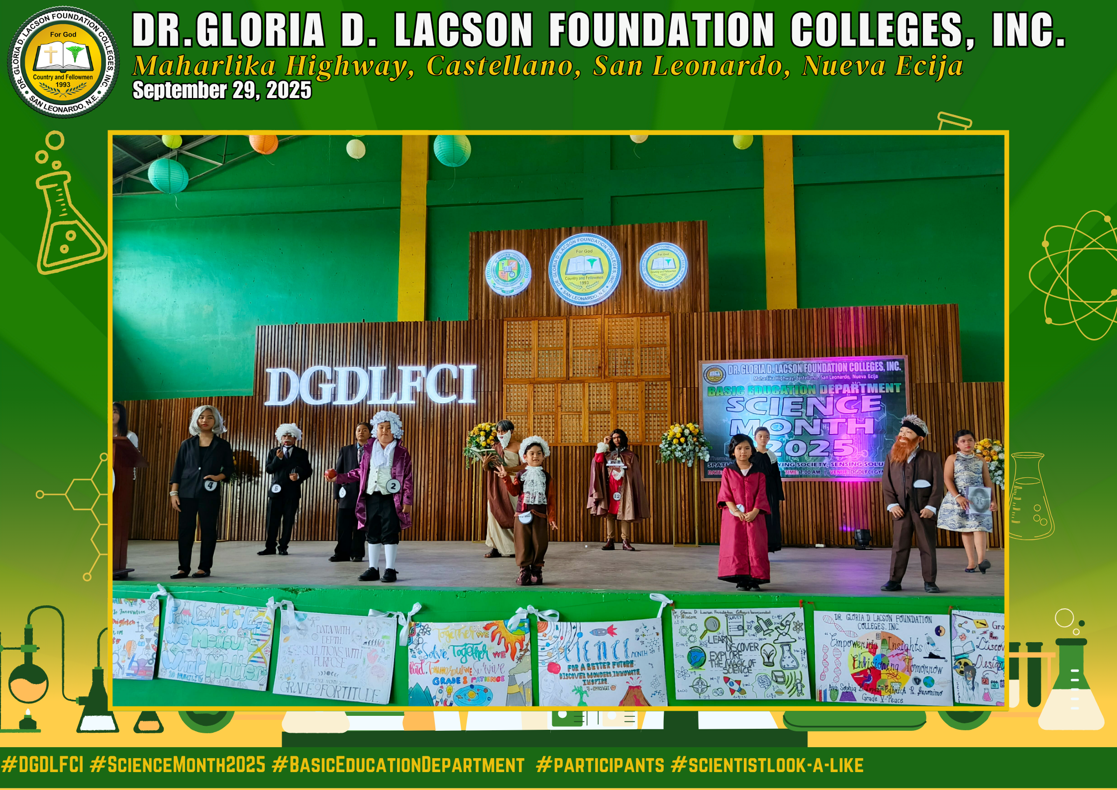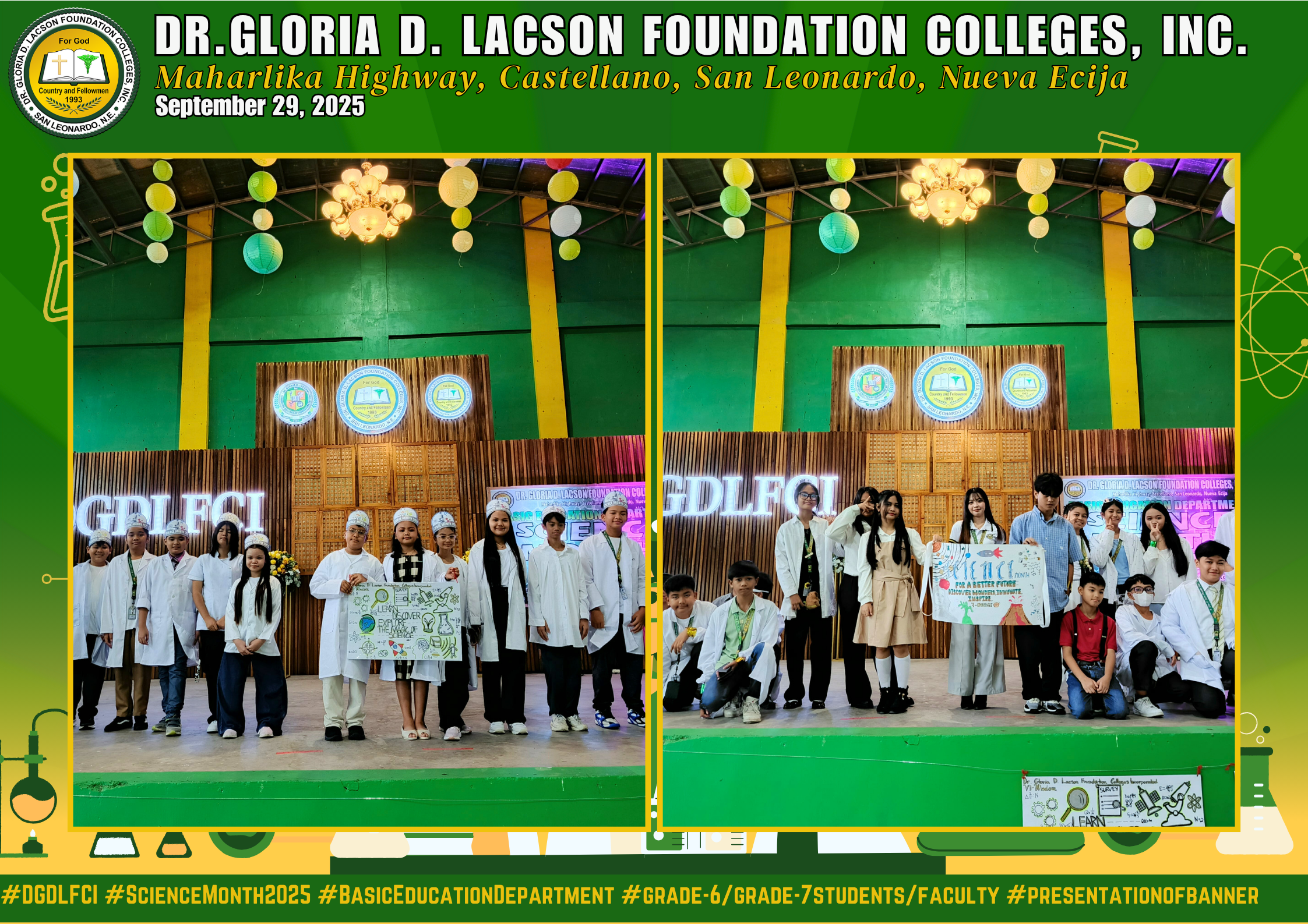 The Basic Education Department of Dr. Gloria D. Lacson Foundation Colleges, Inc. proudly celebrated Science Month 2025 last September 29, 2025, at the DGDLFCI Gymnasium with the theme “Spatialize: Surveying Society, Sensing Solutions.” The event highlighted the vital role of science and innovation in addressing societal challenges, fostering curiosity, and inspiring young Lacsonians to embrace knowledge, creativity, and discovery in shaping a better future.