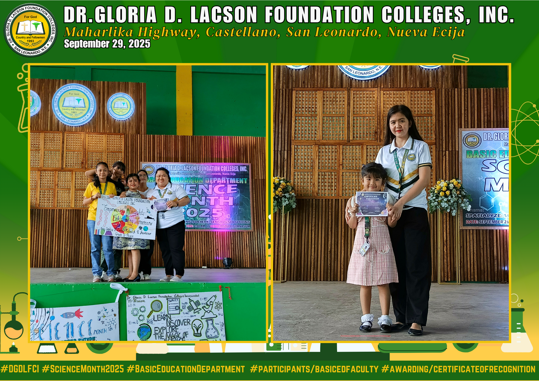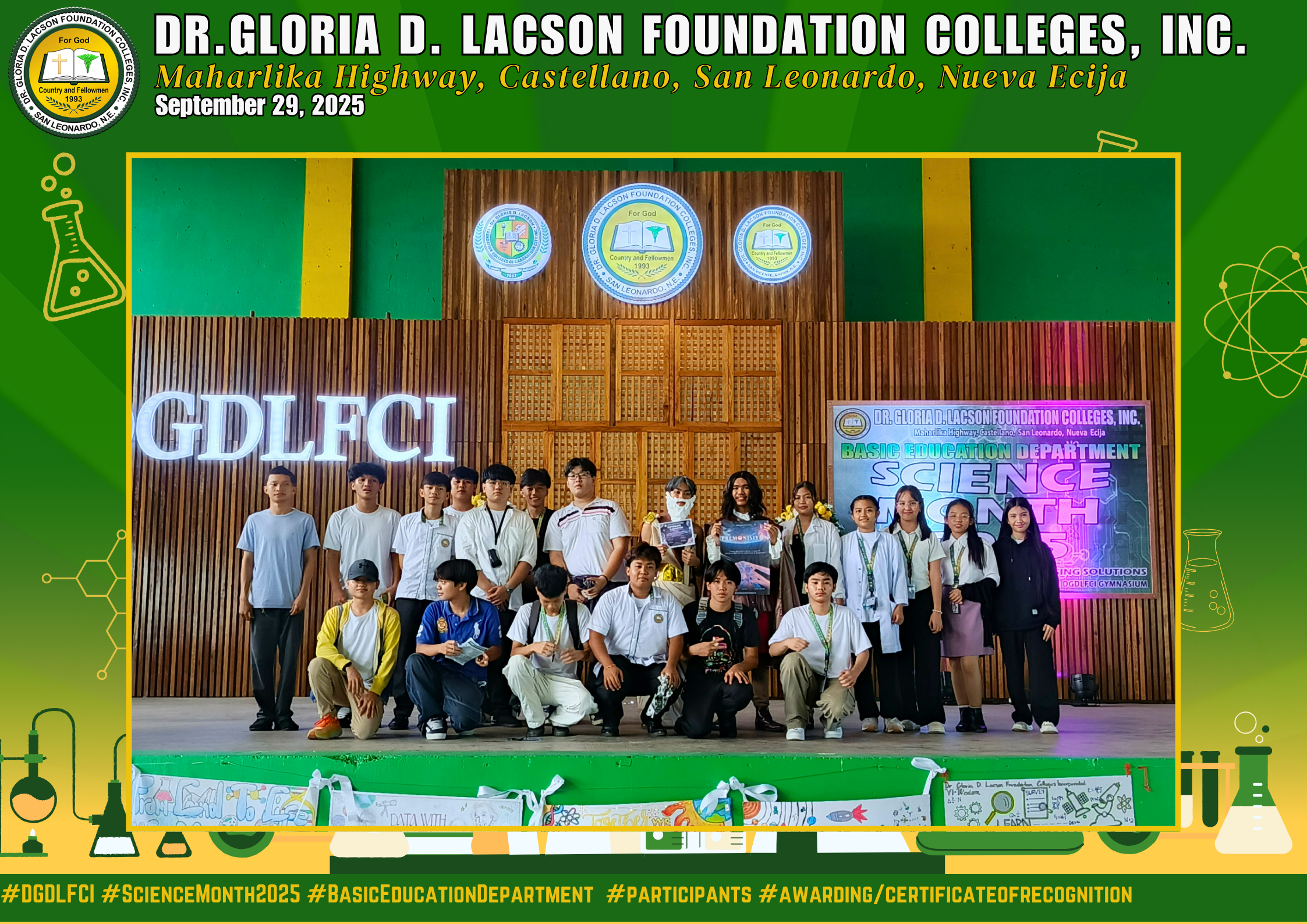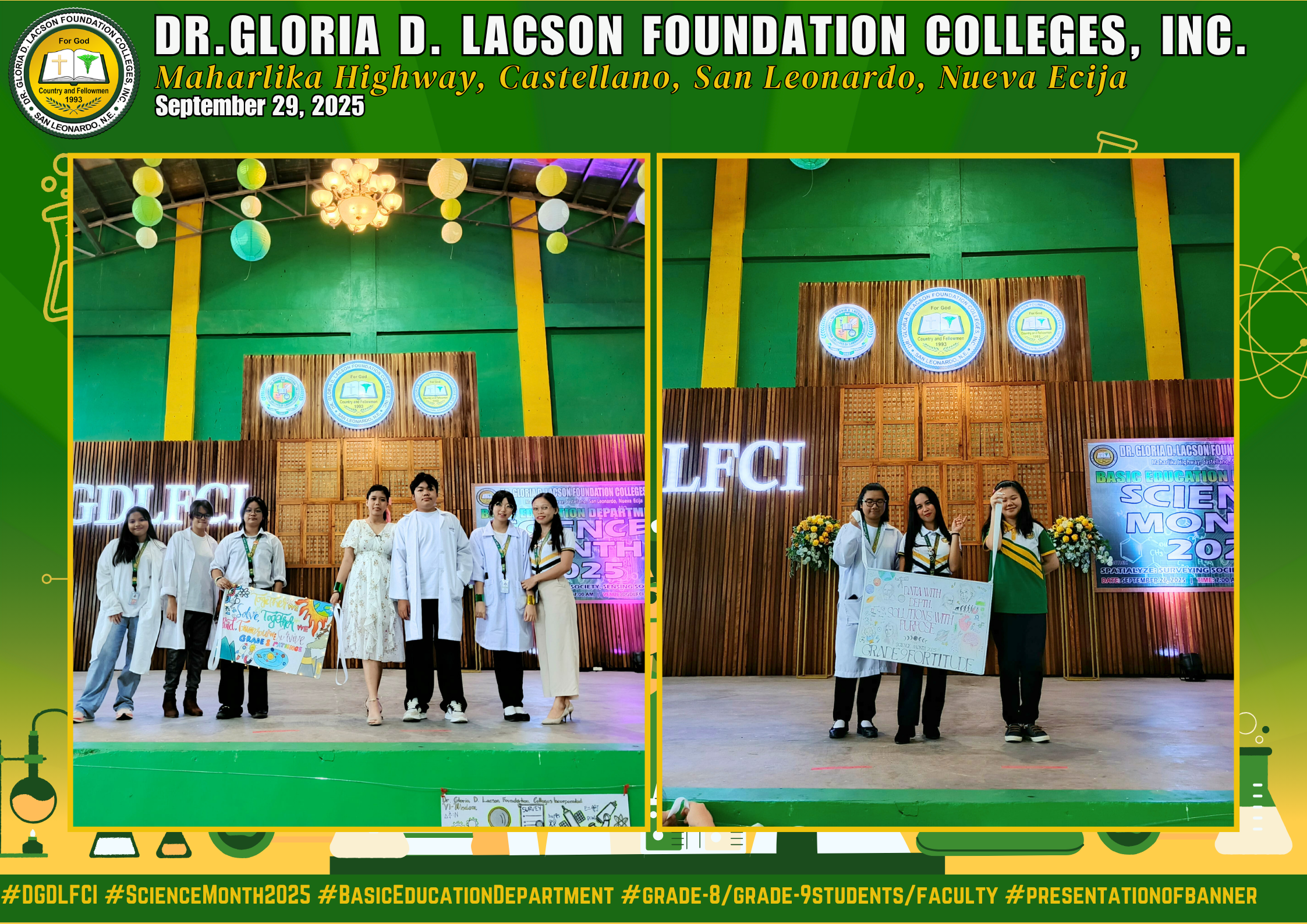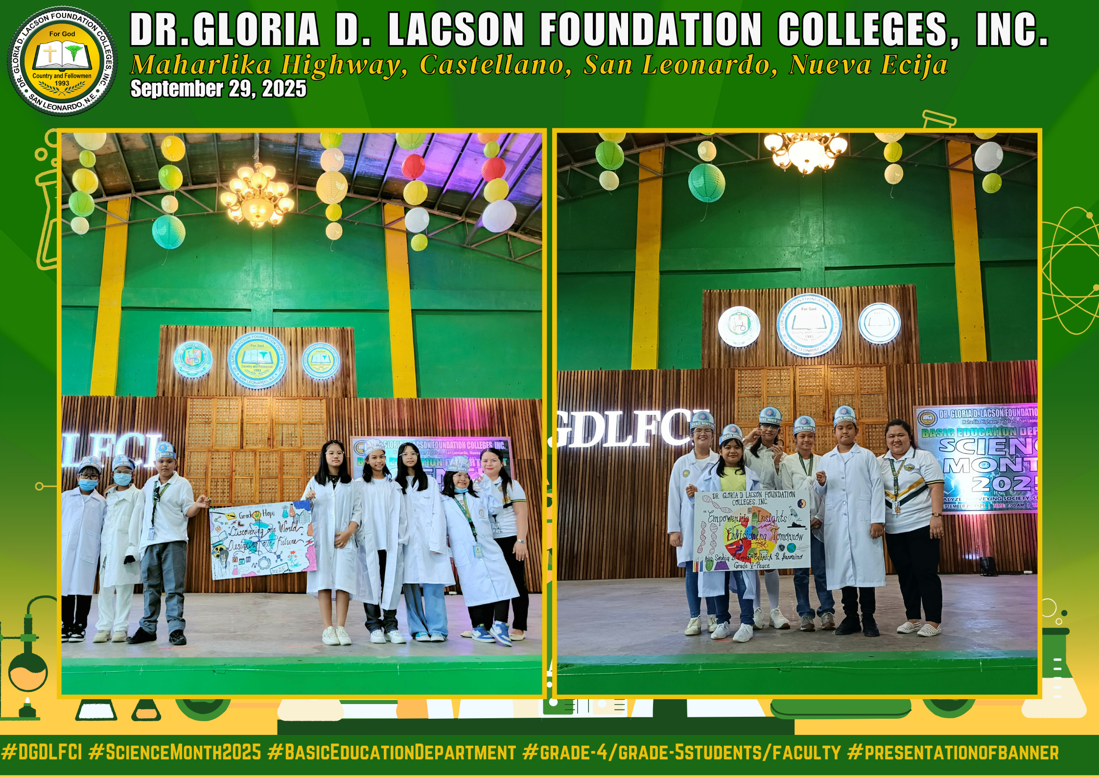 The Basic Education Department of Dr. Gloria D. Lacson Foundation Colleges, Inc. proudly celebrated Science Month 2025 last September 29, 2025, at the DGDLFCI Gymnasium with the theme “Spatialize: Surveying Society, Sensing Solutions.” The event highlighted the vital role of science and innovation in addressing societal challenges, fostering curiosity, and inspiring young Lacsonians to embrace knowledge, creativity, and discovery in shaping a better future.
