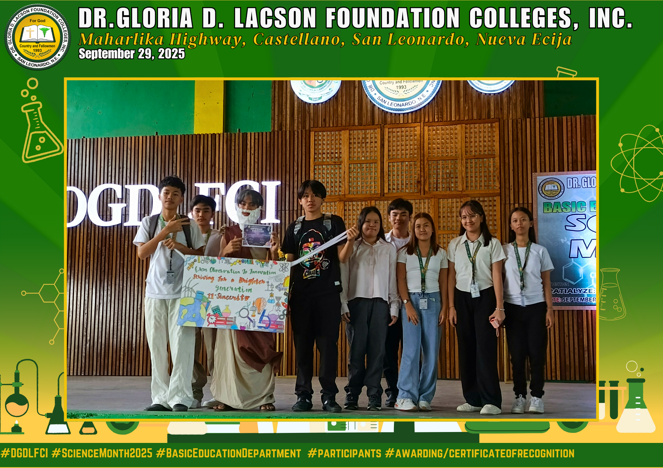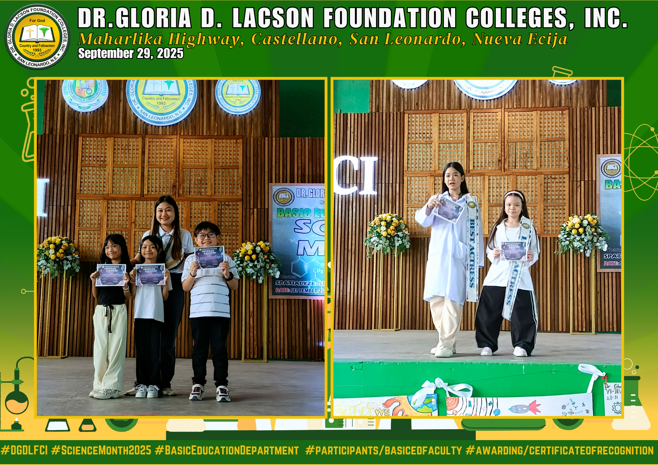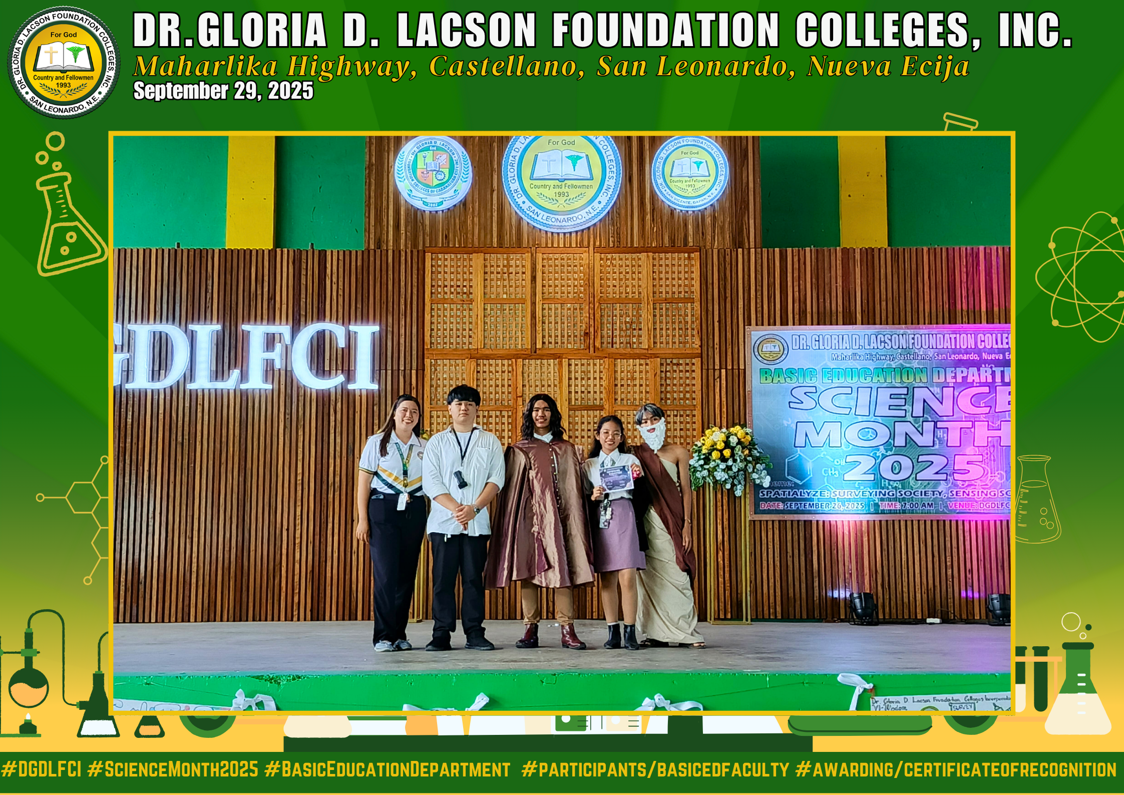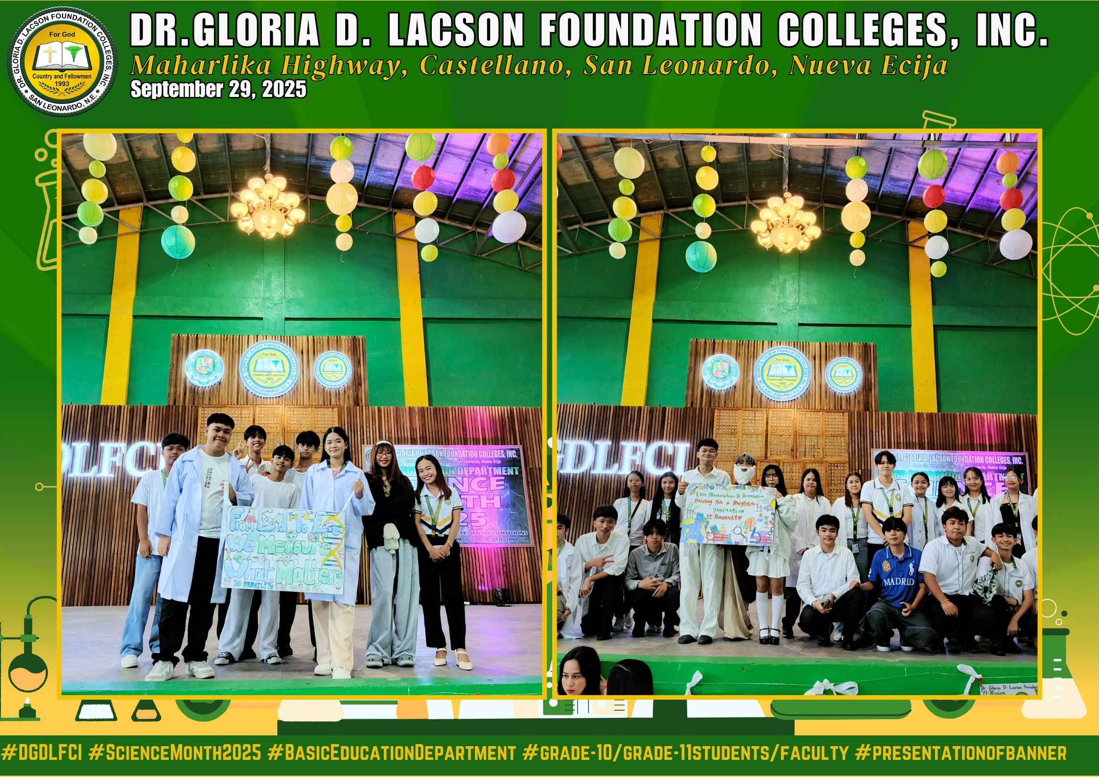 The Basic Education Department of Dr. Gloria D. Lacson Foundation Colleges, Inc. proudly celebrated Science Month 2025 last September 29, 2025, at the DGDLFCI Gymnasium with the theme “Spatialize: Surveying Society, Sensing Solutions.” The event highlighted the vital role of science and innovation in addressing societal challenges, fostering curiosity, and inspiring young Lacsonians to embrace knowledge, creativity, and discovery in shaping a better future.